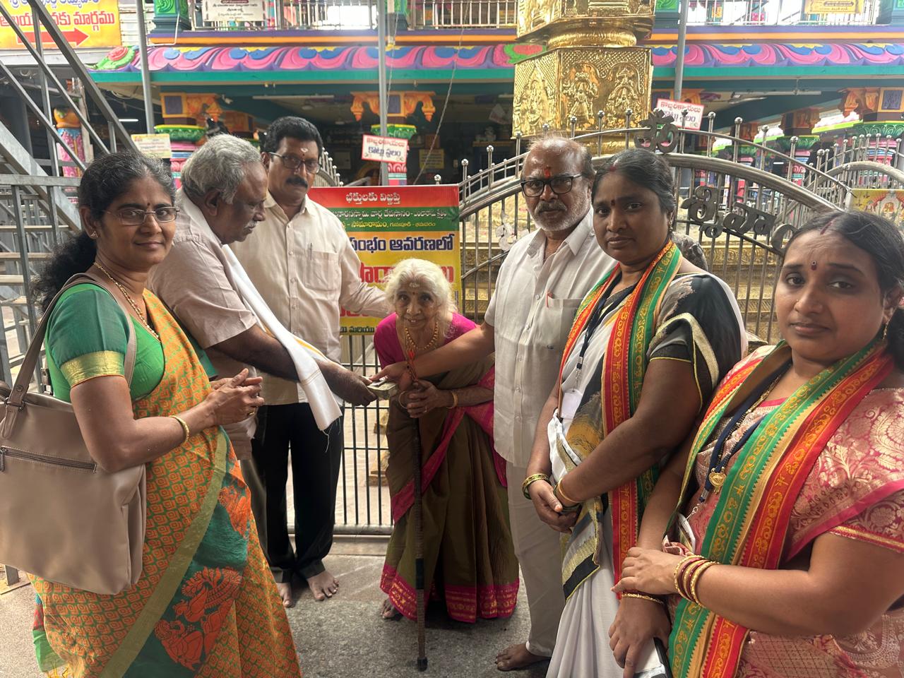 సిగ్మాతెలుగు డాట్, ఇన్ న్యూస్: భీమవరం లోని పవిత్ర పంచారామ క్షేత్రం గునుపూడిలో వేం చేసి యున్న శ్రీ సోమేశ్వర జనార్ధన స్వామివారి దేవాలయంలో దూరప్రాంత భక్తులకు ప్రతి రోజు నిర్వహించే అన్న సమారాధన కోసం నిత్యాన్నదానం ట్రస్టునకు చినమిరం గ్రామా వాస్తవ్యులు బుద్ధ ర్రాజు లక్ష్మీ సరస్వతి అనే వృద్దురాలు, బుద్ధ ర్రాజు రామరాజు గారి పేరున అన్నదానం చేయుటకు రూ _1,00,116/-లు కానుకగా అందేజేశారు. ఈ కార్యక్రమంలో ధర్మకర్తల మండలి చైర్మన్ చింతలపాటి బంగార్రాజు మరియు ధర్మకర్తల మండల సభ్యులు, భక్తులు పాల్గొన్నారని దేవాలయ కార్యనిర్వహణాధికారి డి రామ కృష్ణంరాజు తెలిపారు.
