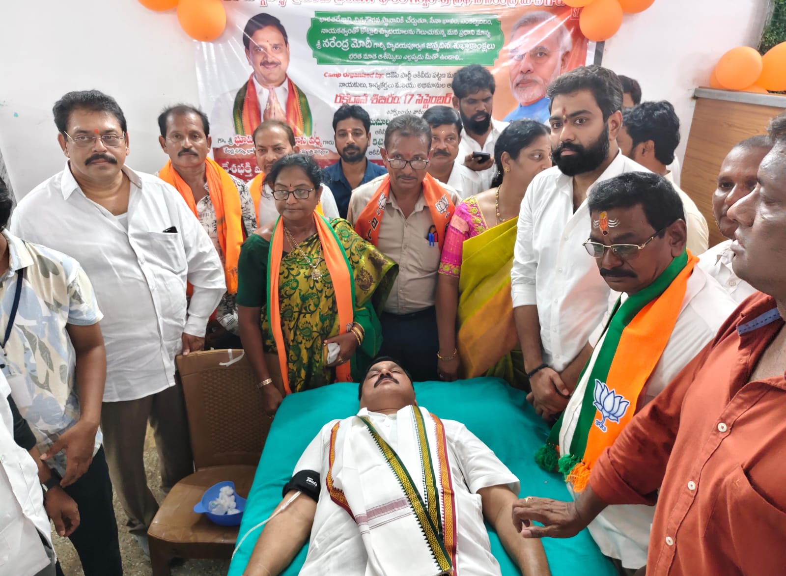 సిగ్మాతెలుగు డాట్, ఇన్ న్యూస్: కేంద్ర ఉక్కు గనుల భారీ పరిశ్రమల శాఖ సహాయ మంత్రి భూపతి రాజు శ్రీనివాస్ వర్మ నేడు, బుధవారం ఆకివీడు రైల్వే స్టేషన్ ప్రాంతాన్ని పరిశీలించారు. ఈ సందర్భంగా రైల్వే స్టేషన్ లోని పలు సమస్యలను స్థానికులు ఆయన దృష్టికి తెచ్చారు. రైల్వే స్టేషన్లో లిఫ్ట్ నిర్మాణ పనులు సగంలోనే ఆగిపోవడంతో ఉన్నతాధికారుల నుంచి మంత్రి, వివరాలు సేకరించారు. పెండింగ్ పనులను త్వరితంగా పూర్తీ చేయిస్తానని హామీ ఇచ్చారు. తదుపరి ఆకివీడులో జరిగిన నరేంద్ర మోడీ పుట్టిన రోజు వేడుకల్లో కేంద్ర మంత్రి భూపతి రాజు శ్రీనివాస్ వర్మ తో పాటు స్థానిక ఎమ్మెల్యే , అసెంబ్లీ ఉప సభాపతి రఘురామా కృష్ణంరాజు పాల్గొన్నారు. ఈ సందర్భంగా ఏర్పాటు చేసిన స్థానిక బీజేపీ నేతలు ఏర్పాటు చేసిన రక్తదాన శిబిరాన్ని ప్రారంభించి ఆయన కూడా స్వయంగా రక్తదానం చేశారు. భారీ కేక్ కట్ చేసి నరేంద్ర మోడీకి ఆయన దేశానికీ, మన ప్రాంతానికి చేస్తున్న సేవలు ప్రశంసిస్తూ పుట్టినరోజు శుభాకాంక్షలు తెలిపారు.