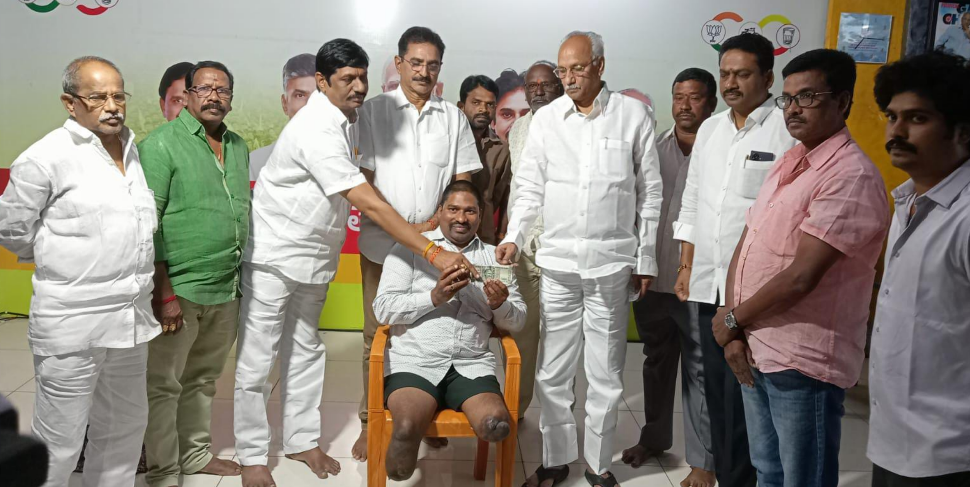 సిగ్మా తెలుగు డాట్, ఇన్ న్యూస్: ఆపదలో ఉన్నవారిని ఆదుకోవడం మానవత్వమని రాష్ట్ర పబ్లిక్ అకౌంట్స్ కమిటీ చైర్మన్ ఎమ్మెల్యే పులపర్తి రామాంజనేయులు (అంజిబాబు) అన్నారు. వీరవాసరంకు చెందిన రెమల్లె వెంకటేష్ ఇటీవలే రైలు ప్రమాదంలో రెండు కాళ్లు కోల్పోవడంతో దాతల సహకారంతో ఎమ్మెల్యే కార్యాలయంలో బుధవారం బాధితునికి రూ 38 వేలు సహకారం అందించారు. బాధితునిగా అండగా ఉంటామని దాతలు ముందుకు రావడం హర్షించదగ్గ విషయమన్నారు. కోళ్ల నాగేశ్వరరావు, బాపిరాజు, చేనెమల్ల చంద్రశేఖర్, కారుమూరి సత్యనారాయణ మూర్తి, యర్రంశెట్టి శివకృష్ణ, లోకం పెద్దిరాజు, వబిలిశెట్టి రామకృష్ణ, జి సతీష్, బదరాల పుల్లేశ్వరరావు, పి రామాంజనేయులు కలిపి రూ 38 వేలను ఎమ్మెల్యే అంజిబాబు చేతుల మీదుగా బాధితునికి అందించారు.