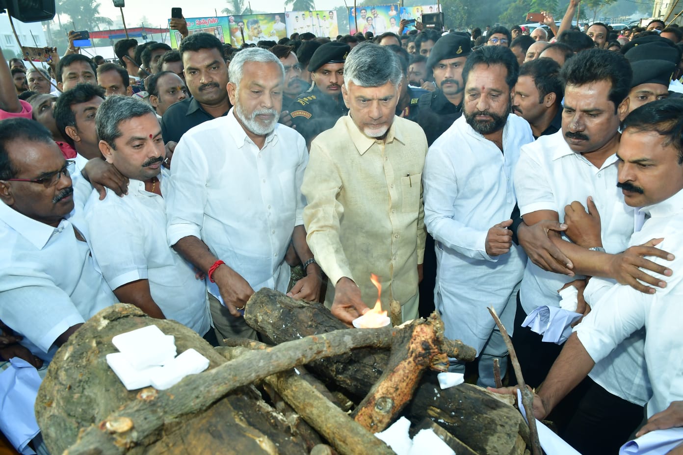 సిగ్మాతెలుగు డాట్, ఇన్ న్యూస్: తెలుగు దేశం పార్టీ అధినేత చంద్రబాబు తన స్వగ్రామం నారావారిపల్లెలో సంక్రాంతి పండుగ సందర్భముగా నేడు, శనివారం బోగి మంటలు వేసే కార్యక్రమాన్ని స్థానిక టీడీపీ నేతల సమక్షంలో ప్రారంభించారు. భోగి మంటల కార్యక్రమంలో నారా చంద్రబాబు ఇటీవల రాష్ట్రంలో పబ్లిక్ రోడ్లపై మీటింగ్స్, ర్యాలీలు అడ్డుకొంటు ప్రభుత్వం తీసుకు వచ్చిన జీవో నెంబర్.1 ను భోగి మంటల్లో వేసి తగలబెట్టి బోగి పండుగ రోజు తమ నిరసన తెలియజేసారు.రాష్ట్రంలో ఈ నియంతృత్వ ప్రభుత్వ పాలనలో అంధకారం అలముకొంటుందని ఈ సంక్రాంతి బోగి రోజున టీడీపీ నేతలు ప్రజలు రాష్ట్రానికి మంచి రోజులు రావాలని ఆ భగవంతుని కోరుకోవాలని చంద్రబాబు సూచించారు.