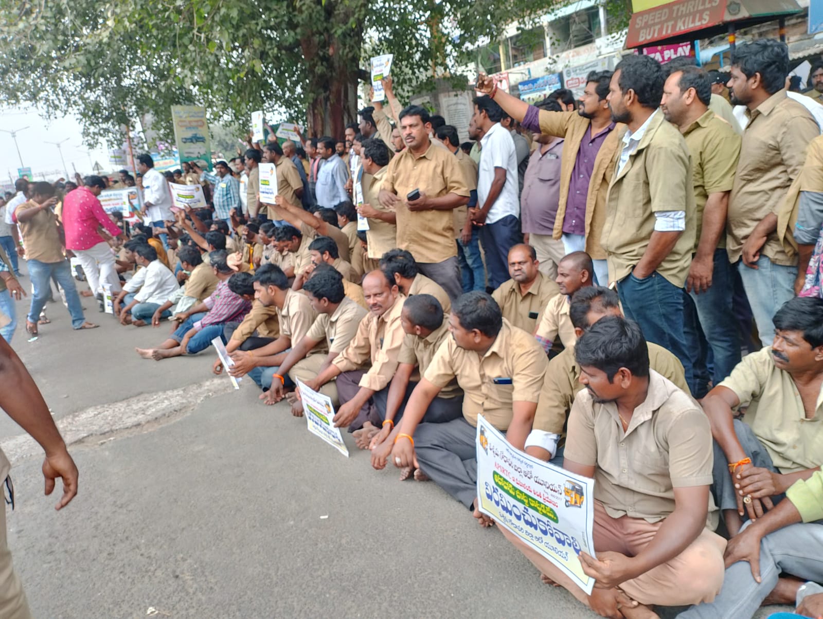 సిగ్మా తెలుగు డాట్, ఇన్ న్యూస్: భీమవరం పాలకొల్లు పట్టణాలలో నేడు, ఆటో రిక్షా కార్మికులు ఆటోలు బంద్ నిర్వహించి టీడీపీ ఎన్నికల మ్యానిపెస్టో లో మహిళల కు ఉచితంగా ఆర్టీసీ బస్ సౌకర్యం అన్న హామీని తొలగించాలని డిమాండ్ చేసారు. ఎన్నికలు సమీపిస్తున్న వేళా మహిళా ఓటర్లు ను తమ వైపు త్రిపుకోవడానికి చంద్రబాబు టీడీపీ మ్యానిపెస్టో లో ఇటువంటి హామీలు ఇచ్చి తమ ఆటో డ్రైవర్స్ కుటుంబాల పొట్ట కొట్టవద్దని డిమాండ్ చేస్తూ ప్లే కార్డ్స్ పట్టుకొని నినాదాలు చేస్తూ జిల్లా ఆటో యూనియన్ అడ్జక్షులు ఇంటి సత్యనారాయణ ఆధ్వర్యంలో భీమవరం బస్సు స్టాండ్ నుండి ప్రకాశం చౌక్ వరకు నేటి సోమవారం ఉదయం స్థానిక వందలాది ఆటో డ్రైవర్స్ భారీ ర్యాలీ నిర్వహించారు. ప్రకాశం చౌక్ వద్ద అల్లూరి సీతారామ రాజు విగ్రహం వద్ద 2 గంటల పైగా ధర్నా నిర్వహించారు. పోలీసులు వాహనదారులకు ఇబ్బంది లేకుండా ఆటో డ్రైవర్స్ తో పరిస్థితిని సమన్వయము చేసారు. స్థానిక జేపీ రోడ్ లో కూడా ఆటో డ్రైవర్స్ టీడీపీ పార్టీ తమ పొట్ట కొట్టవద్దు అని ప్లై కార్డ్స్ ప్రదర్శిస్తూ ధర్నాలు చేసారు. పాలకొల్లులో కూడా ఆటో కార్మికులు నిరసన ర్యాలీ చేసి తక్షణం మ్యానిపెస్టో లో మహిళల కు ఉచిత ఆర్టీసీ బస్ ప్రయాణం తొలగించాలని విన్నతి పత్రాన్ని స్థానిక టీడీపీ ఎమ్మెల్యే నిమ్మల రామానాయుడు కు అందజేశారు.