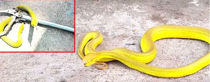 సిగ్మా తెలుగు డాట్, ఇన్ న్యూస్: కలియుగ వైకుంఠంగా ప్రసిద్ధి పొందిన తిరుమలలో అరుదైన బంగారు రంగుతలపిస్తూ పచ్చ నాగుపాము కనిపించింది. సాధారణంగా నాగుపాములు బూడిద రంగులో ఉంటాయి. అయితే తిరుమల లో మాత్రం గత బుధవారం సాయంత్రం బంగారు రంగు నాగుపాము ప్రత్యక్షమై అందరినీ అశ్చర్యపరిచింది. రెండడుగుల పొడవు మాత్రమే ఉన్న ఈ పాము పడగ విప్పి భక్తులకు కనిపించగా వారు పాము రంగు చూసి దేవత స్వరూపంగా భావించారు. దానితో అక్కడి సిబ్బంది పాములు పట్టే టీటీడీ కాంట్రాక్ట్ ఉద్యోగి భాస్కరనాయుడికి సమాచారమిచ్చారు.వెంటనే ఆయన అక్కడికి చేరుకుని పామును పట్టుకుని దట్టమైన అడవిలో విడిచిపెట్టాడు. ఈ అరుదైన పాము నాగుపాము జాతికి సంబంధించినదేనని, అత్యంత విషపూరితమైనదని భాస్కర నాయుడు తెలిపారు.