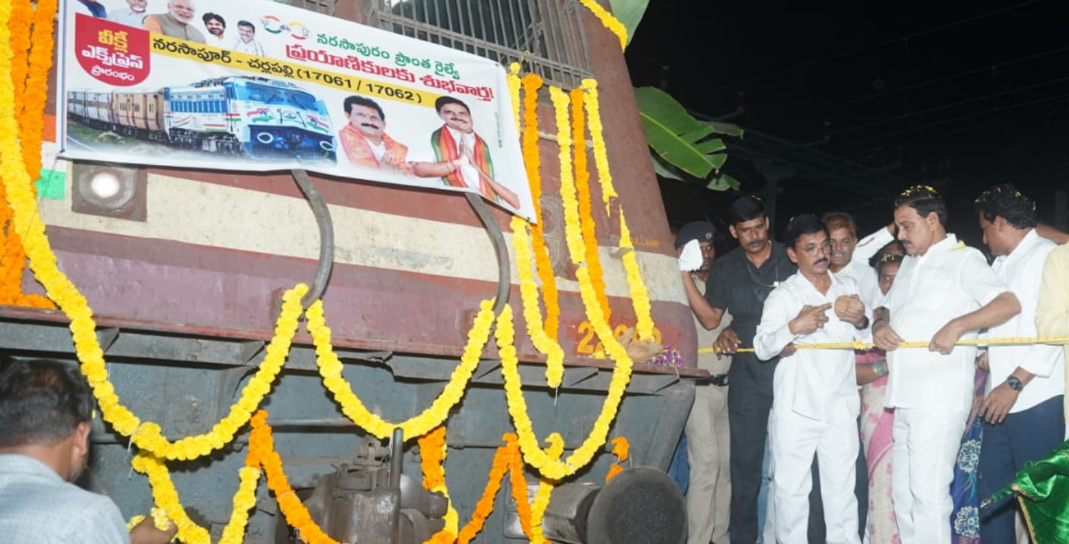 సిగ్మా తెలుగు డాట్, ఇన్ న్యూస్: నరసాపురం నుండి భీమవరం మీదుగా హైదరాబాద్లోని చర్లపల్లి వరకు నడిచే నూతన ‘వీక్లీ సూపర్ ఫాస్ట్ ఎక్స్ప్రెస్’ రైలును గత ఆదివారం రాత్రి నరసాపురం రైల్వే స్టేషన్లో ఘనంగా ప్రారంభించారు. కేంద్ర మంత్రి భూపతిరాజు శ్రీనివాస్ వర్మ, నరసాపురం ఎమ్మెల్యే బొమ్మిడి నాయకర్ కలిసి జెండా ఊపి ఈ రైలును (రైలు నం. 17062) అధికారికంగా ప్రారంభించారు. ఈ సందర్భంగా శ్రీనివాస్ వర్మ మాట్లాడుతూ.. హైదరాబాద్ కు ప్రయాణికుల రద్దీని దృష్టిలో ఉంచుకుని కొత్తగా.. వీక్లీ ఎక్స్ప్రెస్ రైలును అందుబాటులోకి తీసుకువచ్చినట్లు తెలిపారు. అలాగే నరసాపురం నుంచి తిరుపతికి కూడా వీక్లీ రెగ్యులర్ ఎక్స్ప్రెస్ రైలు ప్రారంభించుకోవడం సంతోషకరమన్నారు. నూతనంగా నరసాపురం నుండి చర్లపల్లి వెళ్లే ఈ రైలు (17062) నరసాపురం (NS): నుండి ప్రతి ఆదివారం రాత్రి 20:00 గంటలకు బయలుదేరుతుంది. పాలకొల్లు (PKO): రాత్రి 20:10 గంటలకు. భీమవరం టౌన్ (BVRT): రాత్రి 20:35 గంటలకు. చేరుకొని అటుపిమ్మట ఆఖరి స్టేషన్ చర్లపల్లి (CHZ): మరుసటి రోజు ఉదయం 07:50 గంటలకు గమ్యస్థానానికి చేరుకుంటుంది. సోమవారం తిరుగు ప్రయాణంలో చర్లపల్లి – నరసాపురం రైలు (17061) రాత్రి 19:50 గంటలకు చర్లపల్లిలో బయలుదేరి, మరుసటి రోజు ఉదయం 07:00 గంటలకు నరసాపురం చేరుకుంటుంది.