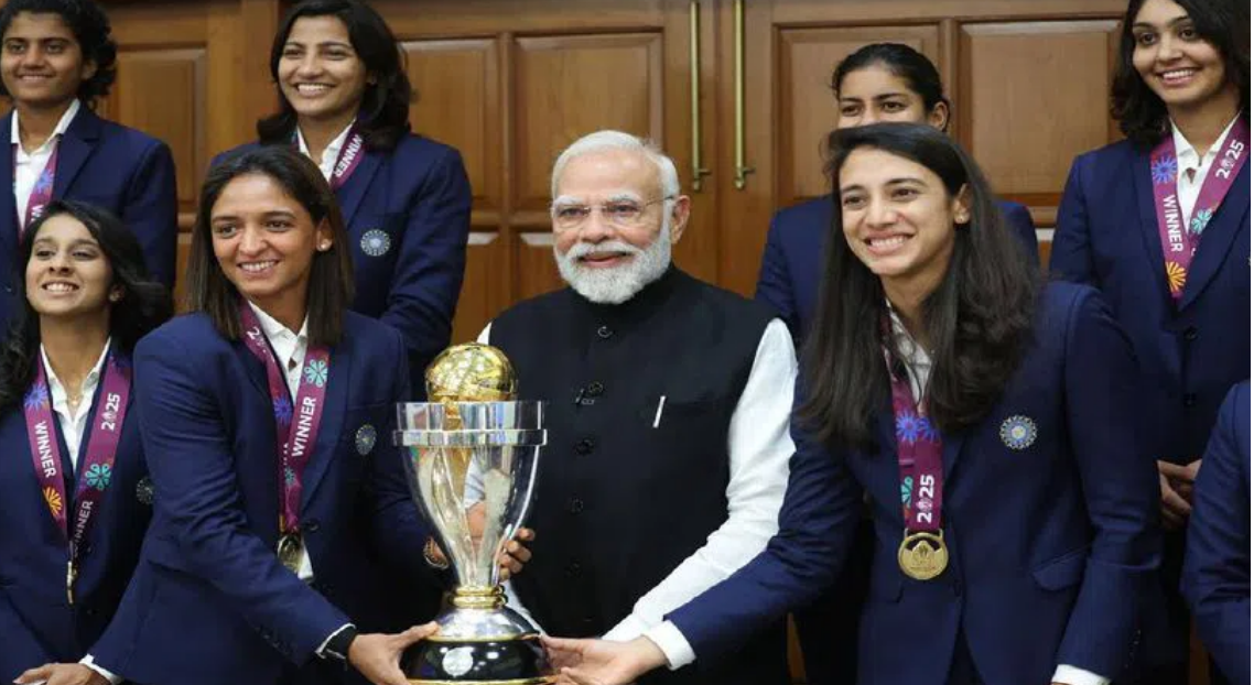 సిగ్మా తెలుగు డాట్, ఇన్ న్యూస్: ఇటీవల మహిళల వన్డే ప్రపంచ కప్‌- 2025 ఫైనల్లో గెలిచి భారత మహిళా జట్టు తొలిసారి ప్రపంచ విజేతగా చరిత్ర సృష్టించిన నేపథ్యంలో తాజాగా.. జట్టు క్రీడాకారిణిలు ప్రధాన కోచ్‌ అమోల్‌ మజుందార్‌ నేతృత్వంలో ఢిల్లీలో ప్రధానమంత్రి నరేంద్ర మోదీని కలిశారు. జట్టును మోదీ అభినందించారు. ప్రపంచ కప్‌లో మొదట మూడు మ్యాచ్‌ల్లో ఓడిపోయినప్పటికీ అనంతరం కోలుకొని టీమిండియా ధాటిగా ఆడిన తీరును గుర్తుచేసుకుని మరీ.. మోదీ వారి పట్టుదలను ప్రశంసించారు. మహిళా ప్లేయర్లతో కొద్దిసేపు మోదీ ప్రత్యేకంగా మాట్లాడారు. భారతదేశంలో క్రికెట్ అంటే కేవలం ఒక ఆట కాదని, అది ప్రజల జీవితంలో భాగమైందని ,దీనిలో యువతులు కూడా ప్రపంచ విజేతలు కావడం దేశానికీ గర్వకారణం అన్నారు