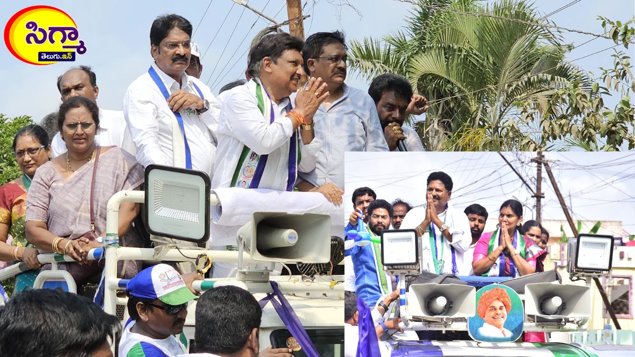 సిగ్మాతెలుగు డాట్, ఇన్ న్యూస్: నేడు, గురువారం భీమవరం టౌన్ లోని 11,12, 13, 14, 15, 24 వార్డులలో జరిగిన ఇంటింట ప్రచార కార్యక్రమంలో ప్రభుత్వ విప్ మరియు భీమవరం నియోజకవర్గం ఎమ్మెల్యే అభ్యర్థి గ్రంధి శ్రీనివాస్ మరియు నరసాపురం పార్లమెంట్ అభ్యర్థిని, గూడూరి ఉమాబాల గారి భర్త గూడూరి జగదీష్, మరియు స్టేట్ క్రిస్టియన్ మైనారిటీ సెల్ చైర్మన్, మేడిది జాన్సన్ పాల్గొన్నారు. ఈ కార్యక్రమంలో పార్టీ నాయకులు కార్యకర్తలు అభిమానులు తదితరులు పాల్గొన్నారు. వైసీపీ కి 2 ఓట్లు వేసి ఘనవిజయం అందించాలని అభ్యర్ధించారు. పశ్చిమ గోదావరి జిల్లా అత్తిలి మండలంలో జరిగిన ప్రచార కార్యక్రమంలో నరసాపురం వైసీపీ ఎంపీ అభ్యర్థి గూడూరి ఉమాబాల మరియు తణుకు నియోజకవర్గ వైసిపి ఎమ్మెల్యే అభ్యర్థి కారుమూరి నాగేశ్వరరావుతో కల్సి ఓటర్లు ను ఓట్లు అభ్యర్ధించారు. మంచిలి,ఆరవల్లి, దంతుపల్లి,ఉనికిలి,లక్ష్మీనారాయణ పురం, ఈడూరు, కంచుమర్రు,కొమ్మర,పాలూరు, గ్రామాలలో ఎన్నికల ప్రచారం నిర్వహించారు. గ్రామాల్లో మహిళలు ప్రజలు పెద్ద ఎత్తున హాజరై ఎంపీ, ఎమ్మెల్యే అభ్యర్థులకు ఘన స్వాగతం పలికారు.ఈ సందర్భంగా ఉమాబాల మాట్లాడుతూ ఎన్నడూ లేని విధంగా జగనన్న ప్రభుత్వంలో పేదలకు ఎన్నో సంక్షేమ పథకాలు అందించి పేద కుటుంబాలకు ఆర్థికంగా చేదోడును అందించారన్నారు. పేద విద్యార్థులకు మంచి భవిష్యత్తు ఇస్తున్నదేశంలో ఏకైక సీఎం జగన్ మాత్రమే నన్నారు.