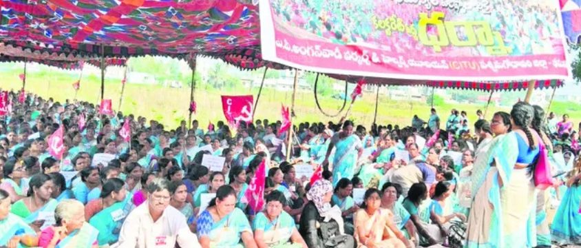 సిగ్మాతెలుగు డాట్, ఇన్ న్యూస్: పశ్చిమ గోదావరి జిల్లా వ్యాప్తంగా అంగన్వాడీ కార్య కర్తలు తమ : సమస్యల పరిష్కారం కోసం భీమవరంలోని జిల్లా కలెక్టరేక్టట్ వద్ద ధర్నా చేసి నిరసన తెలిపారు . ఈ సందర్భంగా స్థానిక ఉపాధ్యాయ ఎమ్మెల్సీ బి.గోపిమూర్తి మాట్లాడుతూ.. రాష్ట్రంలో కూటమి సర్కార్ అధికారంలోకి వచ్చి 18 నెలలు గడుస్తున్నా, అన్ని నిత్యావసర వస్తువులు, సేవలు ధరలు పెరుగుతున్నాయి కానీ, అంగన్వాడీలకు మాత్రం వేతనాలు పెంచకపోవడం దారుణమన్నారు. మాత శిశు సంక్షేమం కోసం ప్రభుత్వం చేపట్టాల్సిన చర్యలకు నిధులు పెంచాలని, అంగన్వాడీ కేంద్రాలకు సొంత భవనాలు ఏర్పాటుచేయాలని, అంగన్వాడీ కార్య కర్తలకు ప్రభుత్వ పథకాలు వర్తింప చేయాలని డిమాండ్ చేశారు . ఐసీడీఎస్ జిల్లా అధికారి పీడీ, డీఆర్వో వచ్చి ధర్నా చేస్తున్న అంగన్వాడీ కార్యకర్తల సమస్యలు విని వారి వద్దనుండి విన్నతి పత్రం స్వీకరించారు .