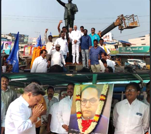 సిగ్మాతెలుగు డాట్, ఇన్ న్యూస్: భారతరత్న డా బిఆర్ అంబేడ్కర్ 69వ వర్ధంతి కార్యక్రమాన్ని భీమవరంలో పలు చోట్ల ఆయన విగ్రహాలకు పూలమాలలు వేసి స్థానికులు నేతలు ఘన నివాళ్లు అర్పించారు. భీమవరం ప్రధాన అంబేడ్కర్ సెంటర్ లో ఎపి ఎస్సీ వెల్పర్ అసోసియేషన్ భీమవరం మండల శాఖ ఆధ్వర్యంలో నిర్వహించారు. ముందుగా ఎమ్మెల్యే అంజిబాబు అంబేడ్కర్ కాంస్య విగ్రహానికి పూలమాలలు వేసి నివాళులర్పించి మాట్లాడారు. ప్రతిఒక్కరికి చదువుకునే హక్కు కల్పించిన ఘనత రాజ్యాంగ నిర్మాత అంబేడ్కర్ దేనని, అంబేడ్కర్ ఒక వర్గానికి చెందిన వారుకాదని అందరి వారని అన్నారు. ఈ కార్యక్రమంలో డిఆర్ వో బి శివనారాయణ రెడ్డి, మున్సిపల్ కమిషనర్ రామచంద్ర రెడ్డి, తహసీల్దార్ రావి రాంబాబు, టిడిపి రాష్ట్ర కార్యదర్శి కోళ్ల నాగేశ్వరరావు, ఎపి ఎస్సీ వెల్పర్ అసోసియేషన్ ప్రెసిడెంట్ మేజర్ డా ఏ వీరయ్య, బార్ అసోసియేషన్ అధ్యక్షులు ఏలేటి న్యూటన్, ఆర్గనైజింగ్ పెదపాటి రాజబాబు, విజ్జురోతి రాఘవులు, తదితరులు పాల్గొన్నారు. ఇక భీమవరం మాజీ ఎమ్మెల్యే గ్రంధి శ్రీనివాస్ కార్యాలయంలో అంబేడ్కర్ ఫొటోకు పూలమాలలు వేసి ఘన నివాళ్లు అర్పించారు. భారత రాజ్యాంగ నిర్మాతగా సమాజంలో అట్టడుగు వర్గాలకు అందరితో సమానవత్వం కల్పించిన ఆశాజ్యోతి గా అంబేడ్కర్ ను అభివర్ణించారు. ఈ కార్యక్రమంలో పలువురు మాజీ కౌన్సెలర్స్ ప్రముఖులు పాల్గొన్నారు.