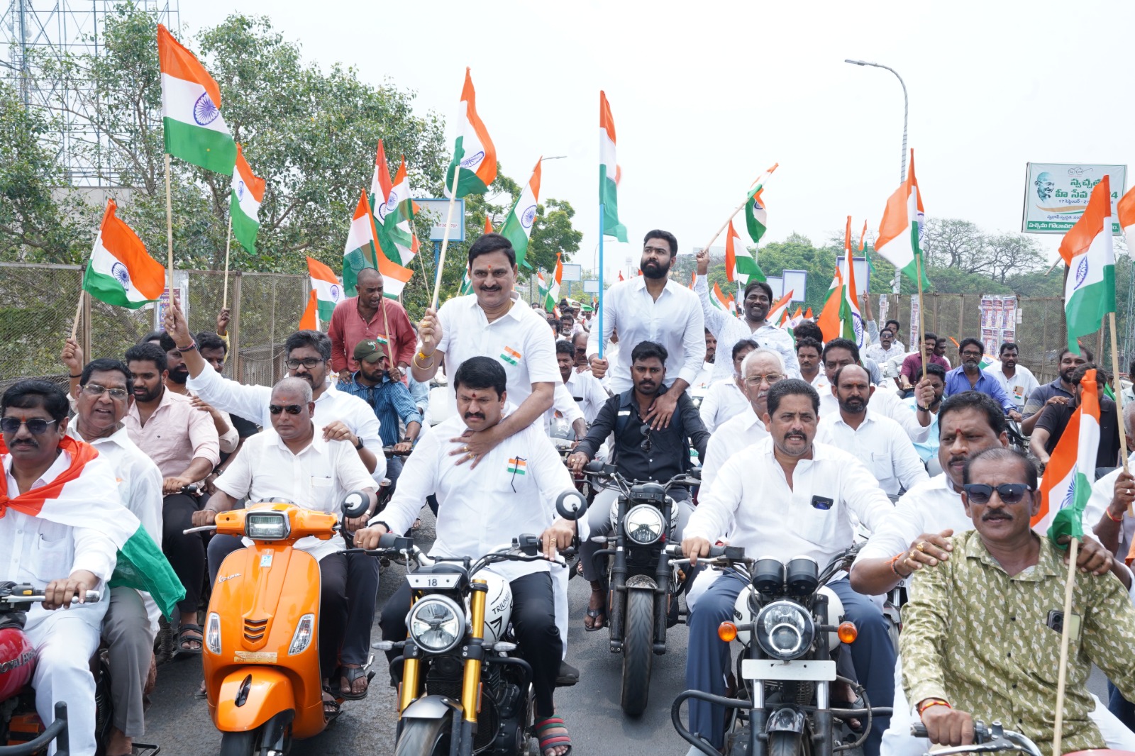 సిగ్మాతెలుగు డాట్, ఇన్ న్యూస్: పాకిస్తాన్ ఫై భారత్ త్రిదళ సేనలు ఆపరేషన్ సింధూర్ తో ఘనవిజయం సాధించిన నేపథ్యంలో నేడు శనివారం భీమవరంలో మువ్వనేల జండాలు చేత బూని తిరంగా బైక్ ర్యాలీని ఘనంగా నిర్వహించారు ,భీమవరం- విస్సాకోడేరు వంతెన వద్ద నుండి జువ్వలపాలెంరోడ్డులోని అల్లూరి సీతారామరాజు విగ్రహం వరకు భారీ ర్యాలీ నిర్వహించారు. విస్సాకోడేరు వంతెన వద్ద . ఈ కార్యక్రమ ప్రారంభోత్సవంలో కేంద్ర మంత్రి శ్రీ భూపతిరాజు శ్రీనివాస వర్మ, రాజ్యసభ సభ్యులు పాక వెంకట సత్యనారాయణ , మాజీ రాజ్యసభ సభ్యురాలు తోట సీతారామలక్ష్మి, ఎమ్మెల్యే శ్రీ పులపర్తి రామాంజనేయులు, జిల్లా కలెక్టర్ చదలవాడ నాగరాణి, పశ్చిమగోదావరి జిల్లా టిడిపి అధ్యక్షులు మంతెన రామరాజు, ఉమ్మడిజిల్లా జనసేన పార్టీ అధ్యక్షులు కోటికలపూడి గోవిందరావు , బిజెపి జిల్లా అధ్యక్షురాలు శ్రీమతి అయినంపూడి శ్రీదేవిఎన్డీఏ కూటమి నాయకులు, వివిధ క్షేత్రాల నాయకులు, కార్యకర్తలు, మాజీ జవాన్లు ప్రజలు పాల్గొన్నారు. కేంద్ర మంత్రి వర్మ తదితర వక్తలు మాట్లాడుతూ.. ఆపరేషన్ సింధూర్ తో భారత్ సేనలు సత్తా , అధునాత ఆయుధాల సత్తా పాకిస్తాన్ తో పాటు ప్రపంచానికి తెలిసిందని భారత్ సేనకు విజయోత్సవ అభినందనలు తెలిపారు