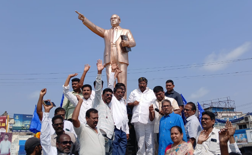 సిగ్మా తెలుగు డాట్, ఇన్ న్యూస్: భారత రాజ్యాంగ నిర్మాత Dr, BR అంబేద్కర్ గారి 135 వ జయంతి సందర్భంగా నేడు, బుధవారం ఉదయం భీమవరం గునుపూడి అంబేద్కర్ నగర్ లో గల Dr BR అంబేద్కర్ గారి విగ్రహానికి శాసన మండలి చైర్మన్. కొయ్యే మోషేను రాజు , వారి కుమారుడు కొయ్యే సుందర్ రాజు, YSRCP భీమవరం నియోజకవర్గ ఇంచార్జ్ చినిమిల్లి వెంకట రాయుడు, MPP పేర్లిచర్ల నరసింహ రాజు YSRCP భీమవరం అధ్యక్షులు గాదిరాజు రామ రాజు, YRCP నాయకులు వాసర్ల ముత్యాల రావు, చిగురుపాటి సందీప్, కాంగ్రెస్ పార్టీ జిల్లా అధ్యక్షులు సీతారాం, వివిధ దళిత సంఘాల నాయకులు పూల మాల వేసి నివాళులు అర్పించారు. భీమవరం అంబేద్కర్ చౌక్ లో గల Dr BR అంబేద్కర్ గారి కాంస్య విగ్రహానికి శాసన మండలి చైర్మన్ కొయ్యే మోషేను రాజు పూల మాల వేసి నివాళులు అర్పించారు ఈ కార్యక్రమంలో వివిధ దళిత సంఘాల నాయకులు పాల్గొన్నారు.