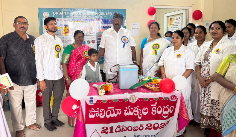 సిగ్మాతెలుగు డాట్, ఇన్ న్యూస్: పశ్చిమ గోదావరి జిల్లా వ్యాప్తంగా నేడు ఆదివారం ఉదయం నుండి 5 ఏళ్ళ లోపు చిన్నారులకు పల్స్ పోలియా చుక్కలు వేసే కార్యక్రమం ఉదృతంగా జరుగుతుంది. భీమవరం బ్యాంకు కాలనీ అర్బన్ ప్రైమరీ హెల్త్ సెంటర్ లో నేడు, ఆదివారం ఉదయం జరిగిన పల్స్ పోలియో కార్యక్రమం లో రాష్ట్ర శాసన మండలి చైర్మన్ కొయ్యే మోషేను రాజు పాల్గొని చిన్నారులకు పల్స్ పోలియో చుక్కలు వేసి కార్యక్రమాన్ని ప్రారంభించారు. స్థానిక ఎమ్మెల్యే అంజిబాబు స్థానిక దుర్గాపురంలోని పట్టణ ఆరోగ్య కేంద్రంలో పల్స్ పోలియో కార్యక్రమాన్ని చిన్నారులకు చుక్కల మందు వేసి ప్రారంభించారు. జిల్లా వైద్య ఆరోగ్య శాఖ , మునిసిపల్ అధికారుల, ఉద్యోగుల పర్యవేక్షణ లో కార్యక్రమం వాడవాడలా జరుగుతుంది.