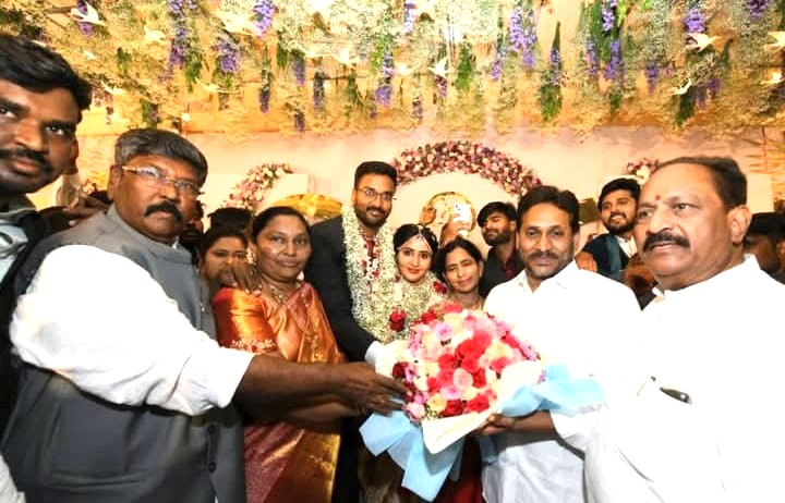 సిగ్మా తెలుగు డాట్, ఇన్ న్యూస్: భీమవరం పట్టణంలో నేడు, గురువారం వైసీపీ అధినేత, మాజీ సీఎం జగన్ రాకతో ఆయన అభిమానులు పెద్ద ఎత్తున రావడంతో స్థానిక ఉండి రోడ్డు, జేపీ రోడ్డులలో వాహనాల ట్రాఫిక్ కు ఇబ్బందులు ఏర్పడినప్పటికీ ట్రాఫిక్ పోలీసులు సమన్వయంతో పని చేసారు.భీమవరం పట్టణ శివారు, పెదఅమిరo లోని రాధా కృష్ణా కళ్యాణ మండపం లో జరిగిన, రాష్ట్ర శాసన మండలి చైర్మన్ కొయ్యే మోషేను రాజు, చిన్న కుమారుడు కొయ్యే చిట్టి రాజు IPS వివాహ వేడుక లో మాజీ ముఖ్యమంత్రి, వైయస్ జగన్ మోహన్ రెడ్డి పాల్గొని నూతన వధూవరులను ఆశీర్వదించారు. ఆయనతో కరచాలనం కు పెద్ద ఎత్తున కల్యాణ మండపంలో అభిమానులు పోటీ పడ్డారు.ఈ కార్యక్రమంలో బొత్స సత్యనారాయణ, స్థానిక ఎమ్మెల్యే పులపర్తి అంజిబాబుతో సహా వివిధ ప్రాంతాల నుండి వచ్చిన MLA లు MLC లు YSRCP నాయకులు తదితరులు పెద్ద పాల్గొని నూతన వధూవరులను ఆశీర్వదించారు. ఉదయం 11-30 గంటలకు హెలికాఫ్టర్ లో భీమవరం చేరుకొన్న జగన్ తిరిగి 12-10 కి హెలికాఫ్టర్ బయలు దేరగా స్థానిక జిల్లా నేతల వీడ్కోలు పలికారు స్థానిక. సుదీర్ఘ కాలం మిత్రులు మోషేను రాజు కు ఆయన కుటుంబానికి ‘సిగ్మా న్యూస్’ శుభాభినందనలు అందించింది.
