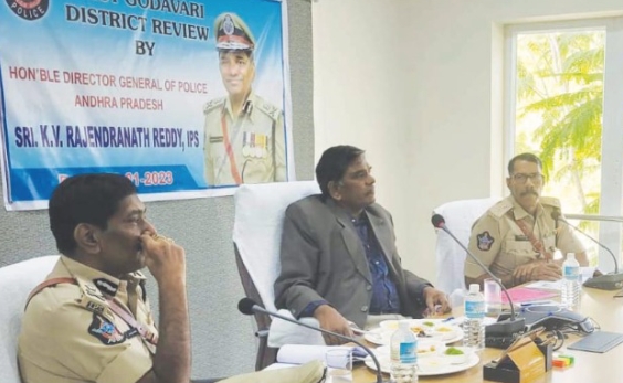 సిగ్మాతెలుగు డాట్ ఇన్ న్యూస్: పశ్చిమ గోదావరి జిల్లా కేంద్రం భీమవరం పట్టణంలో నేడు, శనివారం రాష్ట్ర డైరెక్టర్ జనరల్ అఫ్ పోలీస్ కేవీ రాజేంద్రనాథ్ రెడ్డి పర్యటించి పోలీస్ అధికారులకు కీలక ఆదేశాలు జారీచేశారు. నేటి ఉదయం 9గంటలకు కి భీమవరం చేరుకొని స్థానిక విష్ణు పూర్ లోని బివి రాజు కాలేజీ లో గెస్ట్ హౌస్ కి చేరుకొన్న ఆయనకు ఏలూరు రేంజ్ ఐజీ పాలరాజు, జిల్లా ఎస్పీ రవిప్రకాష్ పుష్ప గుచ్చాలతో సాదర స్వాగతం పలికారు. కొద్దీ సేపు విరామం తరువాత బీవీ రాజు కళాశాల కాన్ఫరెన్స్ హాలులో రాష్ట్ర పోలీస్ బాస్’ డీజీపీ జిల్లా పోలీసు అధికారులతో సమీక్షా సమావేశం నిర్వహించారు. శాంతి భద్రతల పరిరక్షణ లో ప్రస్తుతం జిల్లా రికార్డు ఏ విధంగా ఉంది అని వివరాలు అడిగి తెలుసుకొని కొన్ని సూచనలు చేసారు. అలాగే పట్టణాలలో ట్రాఫిక్ నియంత్రణ, మహిళలకు దిశా యాప్, వాహనదారులకు హెల్మెట్ తప్పనిసరి చేసేలా చర్యలు ఫై ఆయన వారితో సమీక్షా నిర్వహించారు. రాష్ట్ర పోలీస్ బాస్ పర్యటన సందర్భముగా ఉదయం 7 గంటల నుండి భీమవరం 2 టౌన్ లో అంబేద్కర్ సెంటర్ , బై పాస్ రోడ్డు, విష్ణు కాలేజీ వరకు భారీ పోలీస్ భద్రతా ఏర్పాట్లు చేసారు.