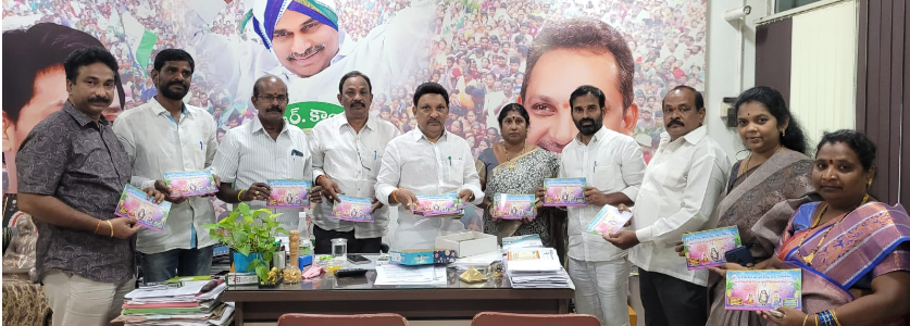 సిగ్మాతెలుగు డాట్ ఇన్ న్యూస్: భీమవరం గునుపూడి నందు వేంచేసి యున్న శ్రీ సోమేశ్వర జనార్థన స్వామి వార్ల దేవస్థానం యెక్క శివరాత్రి కళ్యాణ మహోత్సవముల సందర్భముగా ఉత్సవాల ఆహ్వాన పత్రిక ( ఆలయ విశిష్టత, పురాణ ప్రాశస్యం పొందుపరిచారు) ను నేడు, శుక్రవారం సాయంత్రం స్థానిక ఎమ్మెల్యే కార్యాలయంలో గ్రంధి శ్రీనివాస్ ఆవిష్కరించడం జరిగింది. ఉత్సవాలు ఈ నెల 16వ తేదీ నుండి 20వ తేదీవరకు నిర్వహిస్తున్న నేపథ్యంలో 16 వ తేదీ ఉదయం 7గంటలకు పరమశివునికి రుద్రాభిషేకం నిర్వహించిన తదుపరి శ్రీ అన్నపూర్ణ అమ్మవారికి ఉదయం 9-30 గంటలకు శ్రీ పార్వతి అమ్మవారికి ఎమ్మెల్యే గ్రంధి శ్రీనివాస్ దంపతులు ప్రత్యక కుంకుమ పూజలతో ఉత్సవాలలో పాల్గొంటారు. ఈ కార్యక్రమం నందు ఆలయ ధర్మకర్తల మండలి అధ్యక్షులు శ్రీమతి కోడే విజయలక్ష్మి ,మరియు ధర్మకర్తలు కుర్మదాసు సత్య శ్రీనివాస్, శ్రీమతి నాచు శ్రీవల్లి, శ్రీ లక్కు త్రిమూర్తులు,కోయ తాతాజీ, నల్లం రఘుబాబు, చెల్లబోయిన సూర్య ప్రకాష్, శ్రీమతి సోమాదుల లీలా ఈశ్వరి, తాణల రామకృష్ణ తో పాటు కార్యనిర్వహణాధికారి. ఎం అరుణ్ కుమార్ పాల్గొన్నారు.