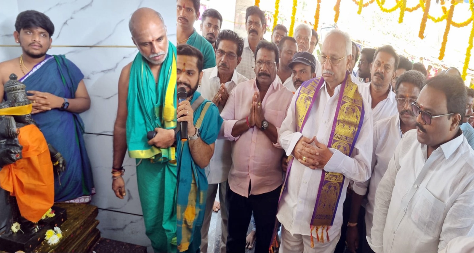 సిగ్మాతెలుగు డాట్, ఇన్ న్యూస్: ప్రాంత ప్రజలైనా రామరాజ్యం కావాలని కోరుకుంటారని, ఉత్తమ పాలకుడు కోదండ శ్రీరాముడు అని, కోదండ రాముని ఆశీస్సులు ప్రజలందరిపై ఉండాలని ఎమ్మెల్యే పులపర్తి అంజిబాబు అన్నారు. భీమవరం మండలం యనమదుర్రు గ్రామంలోని కోదండ రామాలయంలో నేటి,శనివారం ఉదయం శ్రీసీతారామచంద్ర లక్ష్మణ, హనుమ, గణపతి, సుబ్రహ్మణ్య విగ్రహ ప్రతిష్ట మహోత్సవాన్ని నిర్వహించారు. ఎమ్మెల్యే అంజిబాబు విగ్రహ ప్రతిష్ఠాపన మహోత్సవంలో పాల్గొని స్వామివార్లను దర్శించుకున్నారు. ముందుగా ఆలయ అర్చకులు గణపతి పూజ, పుణ్యహవాచనం, అగ్ని ప్రతిష్టాపన హోమము నిర్వహించారు. అనంతరం స్వామివారి శాంతి కళ్యాణం నిర్వహించారు. అధిక సంఖ్యలో భక్తులు స్వామివారిని దర్శించుకుని తీర్ధ ప్రసాదాలను స్వీకరించారు. గ్రామస్తులు, గ్రామ పెద్దలు, కూటమి నాయకులు పాల్గొన్నారు.