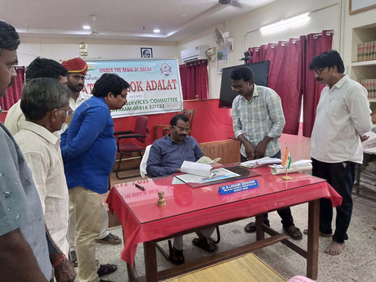 సిగ్మా తెలుగు డాట్, ఇన్ న్యూస్: రాష్ట్ర మరియు జిల్లా న్యాయ సేవాధికార సంస్ధల ఆదేశాల మేరకు భీమవరం కోర్టుల్లో పెండింగులో వున్న కేసులు మరియు ప్రీ లిటిగేషన్ కేసుల పరిష్కారం నిమిత్తం మండల న్యాయ సేవా సంస్ధ ఆధ్వర్యంలో లోక్ అదాలత్( మార్చి నెల 14వ ) శనివారం భీమవరంలో వున్న అన్ని కోర్టుల ప్రాంగణంలో నిర్వహించారు.ఈ జాతీయ లోక్ అదాలత్ లో 3వ అదనపు జిల్లా కోర్టు మరియు సివిల్ జడ్జి (సీనియర్ డివిజన్) కోర్టుల్లో పెండింగులో వున్న కేసులను సంస్ధ చైర్మన్ మరియు పోక్సో కోర్టు ప్లత్యేక న్యాయమూర్తి Dr.B. లక్ష్మీనారాయణ రాజీ చేసారు. అదే విధంగా ప్రిన్సిపల్ సివిల్ జడ్జి (జూనియర్ డివిజన్) కోర్టుల కేసులు పలువురున్యాయమూర్తిల ఆధ్వర్యంలో రాజి చెయ్యడం జరిగింది.ఈరోజు జరిగిన జాతీయ లోక్ అదాలత్ లో 31 సివిల్ కేసులు, 1221 క్రిమినల్ కేసులు, 35 ఎక్సైజు కేసులు11 BSNL ప్రీ లిటిగేషన్ కేసులు, వెరసి 1298 కేసులు రాజీ చెయ్యడం జరిగింది. . రాజీ చేసిన కేసుల విలువ సుమారు 2 కోట్ల 85 లక్షల రూపాయలు. ఈ కార్యక్రమంలో ,బార్ అసోసియేషన్ అధ్యక్ష, కార్యదర్శులు యేలేటి యోహాన్ (న్యూటన్), అడపాల ప్రసన్న కుమార్, న్యాయవాదులు, కోర్టు సిబ్బంది పాల్గొని కేసుల రాజీకి కృషి చేసారు.