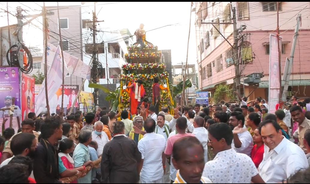 సిగ్మాతెలుగు డాట్, ఇన్ న్యూస్: హరహర నామ స్మరణతో భీమవరం శ్రీరామ పురం లోని శ్రీ వల్లీదేవసేన సుబ్రహ్మణ్యేశ్వర స్వామివారి రథోత్సవం నేటి గురువారం మధ్యాహ్నం ముందుకు సాగింది. షష్టి సందర్భంగా శ్రీరామలింగేశ్వర స్వామివారి (సుబ్బారాయుడు గుడి) స్వామివారి 25 అడుగుల రథోత్సవాన్ని ఎమ్మెల్యే పులపర్తి రామాంజనేయులు ప్రారంభించారు. ముందుగా స్వామివారి ఉత్సవ విగ్రహాలను ఊరేగింపు నిర్వహించారు. అనంతరం దేవస్థానం నుంచి జంట కాలువల రోడ్డు వరకు వేలాది మంది భక్తులు రధం తాడును ను పట్టుకొని హరహర.. అంటూ రధాన్నిముందుకు లాగుతూ ఉత్సవాన్ని దిగ్విజయంగా పూర్తిచేశారు. నిన్న శ్రీ స్వామివారి ని సుమారు 15 వేల మంది భక్తులు దర్శించుకొన్నారు. కిలో మీటర్ వరకు భారీ తీర్ధం, ఎగ్జిబిషన్ ఆబాల గోపాలాన్ని అలరిస్తున్నాయి. రేపు రాత్రి స్వామివారి తెప్పొత్సమ్ జరగనుంది.