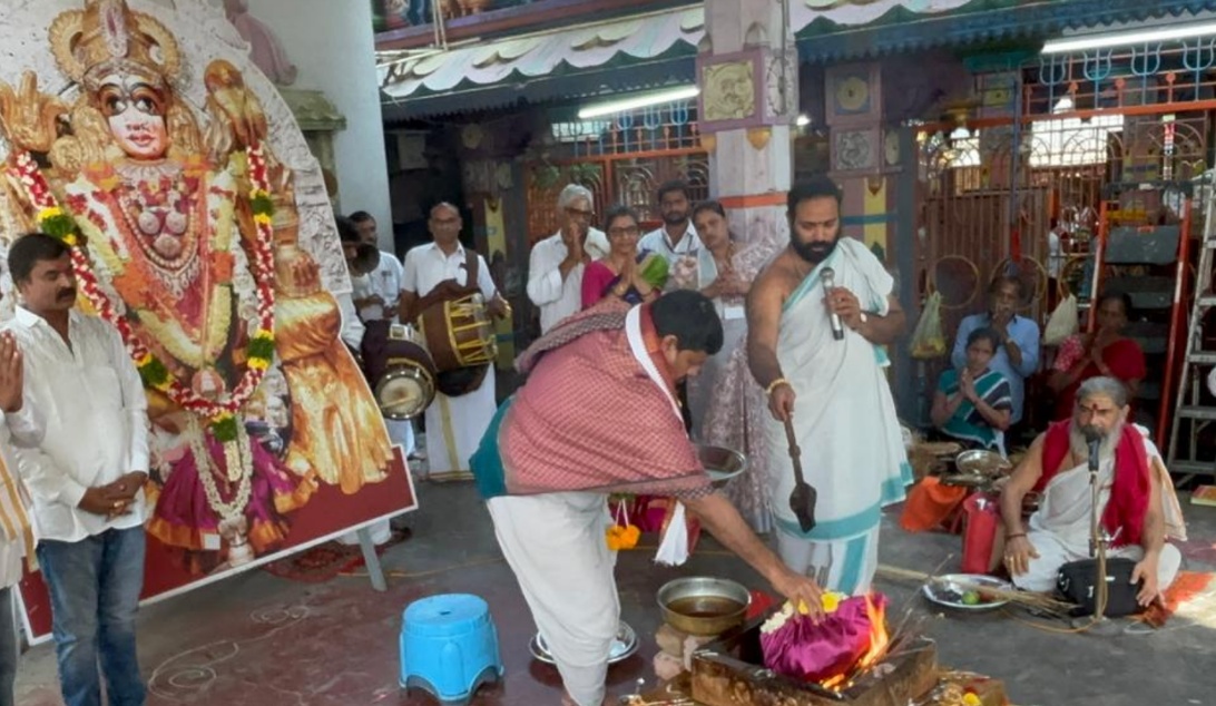 సిగ్మా తెలుగు డాట్, ఇన్ న్యూస్: భీమవరం పురాధీశ్వరి శ్రీశ్రీశ్రీ మావుళ్ళమ్మ అమ్మవారి దేవస్థానం నందు నేడు, శుక్రవారం అమావాస్య సందర్భంగా శ్రీ అమ్మవారి భక్తుల సుఖ సంతోషాలు కోసం పకృతి శక్తుల శాంతి కోసం ‘చండీహోమం’ దేవస్థానo అర్చకులు మరియు వేదపారాయణ దారులు సిబ్బంది సహకారంతో ఘనంగా నిర్వహించారు. ఈ హోమం లో 60 మంది పైగా దంపతులు పాల్గొన్నారు.
