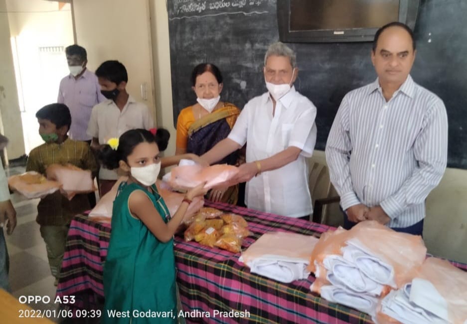 సిగ్మా తెలుగు డాట్ ఇన్, న్యూస్: భీమవరం 2 టౌన్ లోని స్థానిక శ్రీ వెంకటేశ్వర బధిర పాఠశాల లో సంక్రాంతి పండుగ సందర్భంగా విద్యార్థులకు ఈ రోజు దుస్తులు , స్వీట్స్ ను DNR కళాశాల అసోసియేషన్ కార్యదర్శి గాదిరాజు సత్యనారాయణ రాజు ( బాబు) ఆద్వర్యం లో గాదిరాజు సోమరాజు గారు , కాంతమ్మ దంపతులు చే పంచిపెట్టారు. ఈ సందర్భం గా ఆయన మాట్లాడుతూ 1985 సంవత్సరం లో అప్పటి DNR కళాశాల అసోసియేషన్ అధ్యక్షులు శ్రీ గోకరాజు రంగరాజు గారు తిరుమల తిరుపతి దేవస్థానం తో సంప్రదించి ప్రత్యేక అవసారాలున్న బాల బాలికలకు విద్యను అందించాలనే ఉద్దేశ్యం తో 2 ఎకరాల స్థలం కేటాయించి ఈ బధిర పాఠశాలను ఏర్పాటు చేశారని తెలిపారు.ఇక్కడ చదివిన విద్యార్థులు పలు సంస్థలలో ఉన్నతంగా ఉన్నారని తెలిపారు.ఈ సందర్భం గా గాదిరాజు సోమరాజు మాట్లాడుతూ ప్రతి సంవత్సరం లానే ఈ సంవత్సరం కూడా సుమారు 130 మంది విద్యార్థులకు దుస్తులు స్వీట్స్ పంపిణీ చేయడం జరిగిందని అన్నారు. ప్రతి వ్యక్తి తనకు ఉన్న తహతను బట్టి సామాజిక సేవను చెయ్యాలని అన్నారు. ఈ కార్యక్రమం లో బధిర పాఠశాల అధ్యాపక సిబ్బంది, విద్యార్థులు తదితరులు పాల్గొన్నారు.