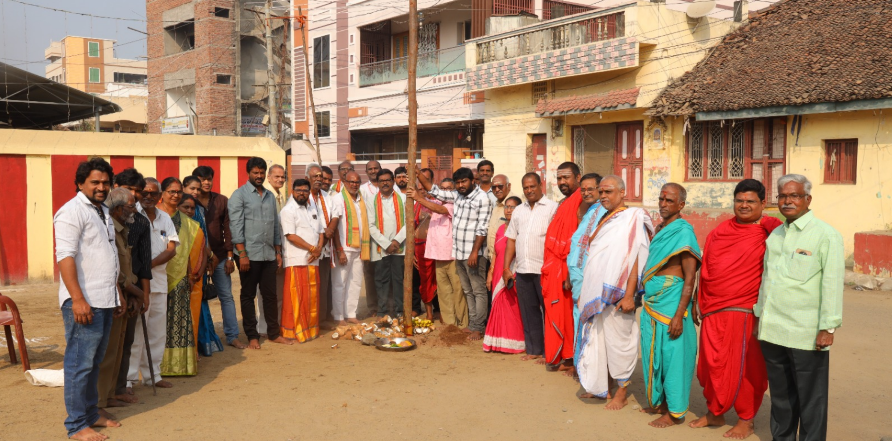 సిగ్మాతెలుగు డాట్, ఇన్ న్యూస్: భీమవరంలో పవిత్ర పంచారామ క్షేత్రంగా భాసిల్లుతున్న గునుపూడి ప్రాంతంలోని శ్రీ సోమేశ్వర జనార్ధన స్వామి వారి దేవస్థానం నందు రానున్న మహాశివరాత్రి వార్షిక కళ్యాణ మహోత్సవములు కు ఏర్పాట్లు ప్రారంభమయ్యాయి. ది 13- 2-2026 నుండి 17-2-2026వ తేదీ వరకు జరుగు కళ్యాణ మహోత్సవములు సందర్భంగా పందిరి రాట వేయుటకు ఆలయ పండితులు అర్చక స్వాములుశుభ ముహూర్తం నిర్ణయించడం జరిగినది. ఈ కార్యక్రమంలో చింతలపాటి బంగార్రాజు, ధర్మకర్తల మండలి చైర్మన్ మరియు ధర్మకర్తల మండల సభ్యులు బ్రహ్మ జోశ్యుల సత్యప్రసాద్ , బొచ్చా కృష్ణవేణి, పడమట లీల, పాల వెంకట రామకృష్ణ, సాయి నాగేంద్ర విజయలక్ష్మి కుమారి .యార్లగడ్డ రమేష్,బండి రమణ పొట్నూరి శ్యామ్ కుమార్ , పెద్దింటి జ్యోతిర్మయి కొప్పర్తి విజయ్ కుమార్, కందుకూరు సోమేశ్వరరావు, ఎక్స్ అఫీషియో మెంబరు మరియు ఆలయ ఇఓ రామకృషంరాజు, ఆలయ సిబ్బంది, గునుపూడి గ్రామ పెద్దలు మరియు భక్తులు పాల్గొన్నారు.