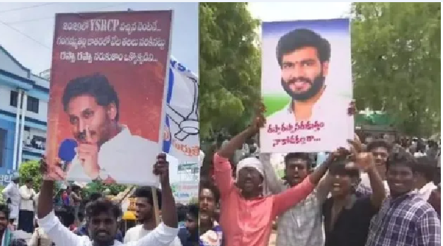 సిగ్మాతెలుగు డాట్, ఇన్ న్యూస్: పల్నాడు లో వైసీపీ నేత ఆత్మహత్య నేపథ్యంలో ఆ కుటుంబాన్ని పరామర్శ కు వచ్చిన జగన్ పర్యటనలో ఉత్సహం ఎక్కువయిన వైసీపీ కార్యకర్తలు పలు వివాదాస్వాద ఫ్లెక్సీ బోర్డులతో సంచలనం సృష్టించారు. ఆ బోర్డులలో ఏమి ఉందంటే.. మళ్లీ వైసీపీ అధికారం లోని వచ్చిన వెంటనే.. గంగమ్మతల్లి జాతరలో వేట తలలు నరికినట్టు.. రప్పా రప్పా నరుకుతాం నా కొ..! పల్నాడు నుంచి మొదలు, అన్న వస్తాడు.. అంతు చూస్తాడు!’ అంటూ కొందరు వైసీపీ కార్యకర్తలు ప్లకార్డులు, ఫ్లెక్సీలు ప్రదర్శించారు. ఇలాంటి రాతలపై హోమ్ మంత్రి తో సహా టీడీపీ నేతలు తీవ్రస్థాయిలో మండిపడుతున్నారు. వాటిని మంత్రి లోకేష్ కూడా తన ట్విటర్ లో పోస్టు చేసి.. ఏమిటి? రప్ప! రప్ప! అంటూ ప్రజలను భయబ్రాంతులకు ఎందుకు గురి చేస్తున్నారు? అని ప్రశ్నించారు. అధికారం పోయిన కూడా వైసీపీ నేతలకు ఎక్కడి నుండి ఈ దైర్యం వస్తుందని ?ఆగ్రహం వ్యక్తం చేస్తున్నారు. మరోవైపు నిన్న జగన్ పర్యటనలో పోలీసులు అడ్డుగా పెట్టిన బారికెట్స్ ను విసిరి పాడేసి పోలీసులపై దురుసుగా ప్రవర్తించారంటూ మాజీ మంత్రి అంబటి రాంబాబుపై కేసు నమోదు చేసిన పోలీసులు.. సత్తెనపల్లి వైసీపీ ఇంచార్జ్ గజ్జల సుధీర్ భార్గవ్ రెడ్డి , మాజీ ఎమ్మెల్యే గోపిరెడ్డి శ్రీనివాస్ రెడ్డిపై మరో కేసు నమోదు చేశారు. జగన్ పర్యటనలో అనుమతి లేకుండా ర్యాలీ , డీజే స్టాండ్ ఏర్పాటుపై కూడా కేసు నమోదు అయ్యింది.
