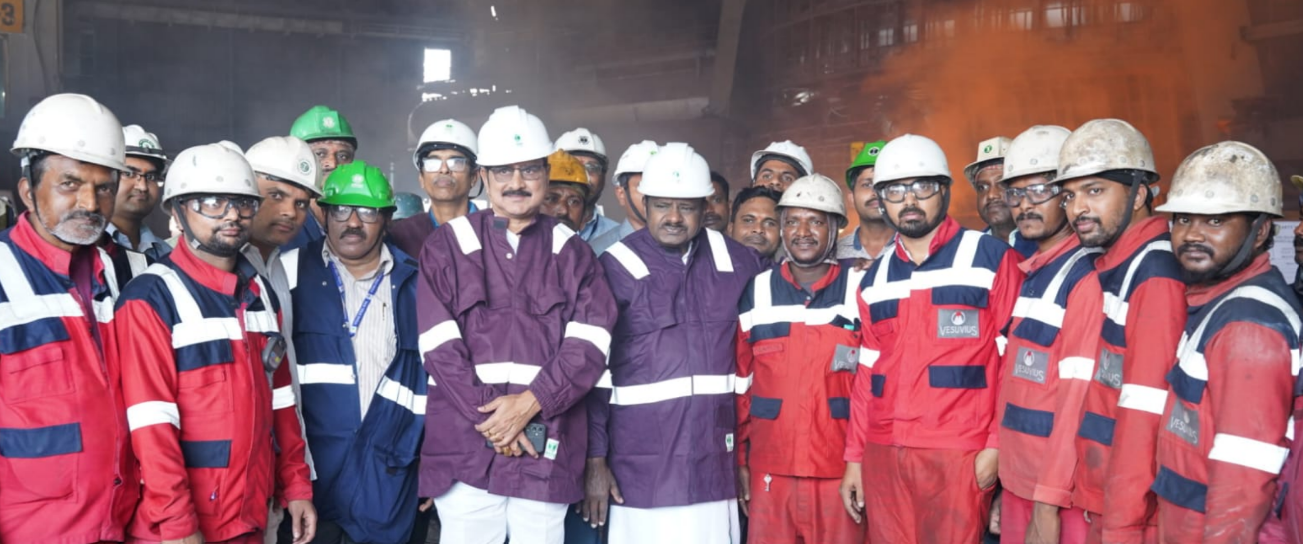 సిగ్మాతెలుగు డాట్, ఇన్ న్యూస్:: కేంద్ర ఉక్కు, భారీ పరిశ్రమల శాఖ మంత్రి హెచ్.డి. కుమారస్వామి, కేంద్ర ఉక్కు, భారీ పరిశ్రమల శాఖ సహాయమంత్రి భూపతిరాజు శ్రీనివాస వర్మ నేడు, సోమవారం విశాఖ స్టీల్ ప్లాంట్ను (RINL) సందర్శించారు. ఈ సందర్భంగా ప్లాంట్లోని వివిధ విభాగాలను క్షేత్రస్థాయిలో పరిశీలించిన అనంతరం ప్లాంట్ పురోగతిపై ఉన్నతాధికారులతో కలిసి వారు ఉన్నత స్థాయి సమీక్షా సమావేశాన్ని నిర్వహించారు. మొదట పర్యటనలో భాగంగా కేంద్ర మంత్రులు ప్లాంట్లోని కోక్ ఓవెన్ యూనిట్ను సందర్శించి ఉత్పత్తి ప్రక్రియను అడిగి తెలుసుకున్నారు. అనంతరం ప్లాంట్ పునరుద్ధరణ చర్యల్లో భాగంగా 27 జూన్ 2025న తిరిగి ప్రారంభించిన బ్లాస్ట్ ఫర్నేస్-3 (BF-3) కార్యకలాపాలను నిశితంగా పరిశీలించారు. ప్లాంట్ పూర్తి స్థాయి ఉత్పత్తి సామర్థ్యాన్ని పునరుద్ధరించడంలో ఈ విభాగం పోషిస్తున్న కీలక పాత్రను అధికారులు మంత్రులకు వివరించారు. గత మూడు నెలలుగా లాభాల బాటలో విశాఖ ఉక్కు:పయనించడం హర్షణీయమని కేంద్ర సహాయమంత్రి శ్రీనివాస వర్మ అన్నారు.