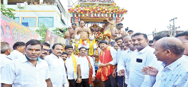 సిగ్మాతెలుగు డాట్, ఇన్, న్యూస్: భీమవరం సమీపంలో కేవలం 11 కిలో మీటర్లు దూరంలో 450 ఏళ్ళ క్రితం శ్రీ వేంకటేశ్వరుడు స్వయం భువుడుగా వెలసిన కాళ్ళకూరు గ్రామం లో శ్రీ వేంకటేశ్వరస్వామి వారి తిరు కల్యాణ మహోత్సవాల్లో భాగంగా స్వామివారి సుమారు 30 అడుగుల రథోత్సవం వైభవంగా సాగింది. వేద మంత్రాల నడుమ పలు మేళతాళలతో సుందరంగా అలంకరించిన రథంపై స్వామివారు ఆసీనులై భక్తులకు దర్శనమిచ్చారు. తొలుత రథంపై ఆసీనులైన స్వామికి ప్రత్యేక పూజలు చేసిన తరువాత ఉండి ఎమ్మెల్యే మంతెన రామరాజు, డీసీసీబీ ఛైర్మన్‌ పీవీఎల్‌ నరసింహరాజు, రాష్ట్ర క్షత్రియ కార్పొరేషన్‌ ఛైర్మన్‌ పాతపాటి వాసు రథాన్ని లాగి ప్రారంభించారు. కార్యక్రమంలో ఏర్పాటు చేసిన బుట్ట బొమ్మలు, శక్తి వేషాలు, తీన్మార్‌ డప్పులు, మేళతాళాలు, డీజే సిస్టం భక్తులను ఉత్సహపరిచాయి. . రథోత్సవంలో పాల్గొన్న భక్తులు రథాన్ని లాగేందుకు గోవిందా.. గోవిందా.. అంటూ పోటీపడటంతో వీధులన్నీ ఉమ్మడి పశ్చిమ జిల్లా నలుమూలల నుంచి వచ్చిన భక్తులతో కాళ్ళకూరులో దారులన్నీ కిక్కిరిసిపోయాయి.కాళ్ల పోలీసులు ప్రత్యేక బందోబస్తు నిర్వహించారు. ఆలయ ధర్మకర్తల మండలి చైౖర్మన్‌ దండు వెంకటకృష్ణంరాజు, కార్యనిర్వహణాధికారి మోకా .అరుణ్‌కుమార్‌, ధర్మకర్తలు, ఏర్పాట్లను పర్యవేక్షించారు. ఇదిలా ఉండగా చిన్న తిరుమలగా పిలువబడే జిల్లాలోని ద్వారకా తిరుమల లో గత శుక్రవారం రాత్రి జరగవలసిన రధోత్సవం వర్షం కారణంగా రద్దు చెయ్యడం గమనార్హం.