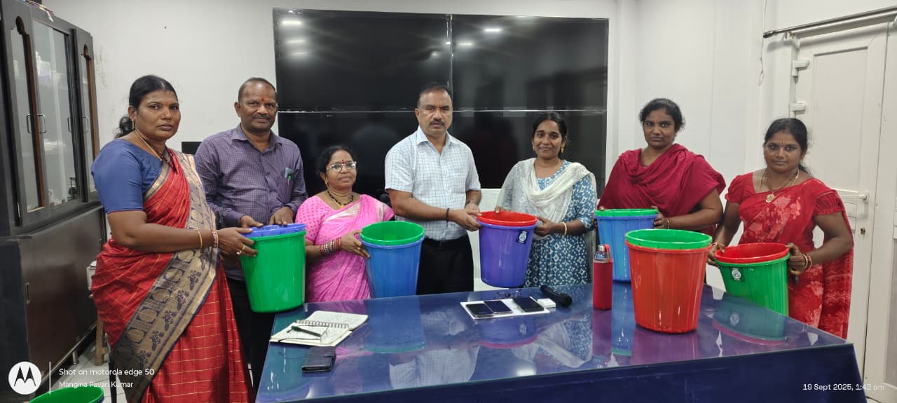 సిగ్మాతెలుగు డాట్, ఇన్ న్యూస్: నేడు, శుక్రవారం భీమవరం పురపాలక సంఘ కార్యాలయం నందు మునిసిపల్ కమిషనర్ కె. రామచంద్రారెడ్డి , అసిస్టెంట్ కమీషనర్ ఏ రాంబాబు మరియు మెప్మా CMM డి.శివప్రసాద్, ఆధ్వర్యంలో స్వయం సహాయక సంఘాల సభ్యులకు మరియు RP లకు స్వచ్ఛతా హే సేవ మరియు స్వర్ణాంధ్ర – స్వచ్ఛ ఆంధ్ర కార్యక్రమంలో భాగంగా తడి వ్యర్ధాలను ఇంటి వద్దనే హోం కంపోస్టింగ్ చేసుకునే విధానంపై మరియు హోం కంపోస్టు ద్వారా వచ్చిన కంపోస్ట్ ఎరువును టెర్రస్ గార్డెన్ నందు ఏవిధంగా వినియోగించవచ్చో అధికారులు సదరు సభ్యులకు వివరించడం జరిగింది తద్వారా రోజు ఇంటి వచ్చు తడి వ్యర్ధాలను కంపోస్టు ఎరువుగా మార్చుకుని మనకు అవసరమైన కూరగాయలను సేంద్రియ పద్ధతిలో పండించుకునే విధానంపై కమిషనర్ వారు అవగాహన కల్పించారు. తద్వారా పర్యావరణ పరిరక్షణ మరియు మనకు ఆరోగ్య రక్షణ రెండు కలుగుతాయని కమిషనర్ తెలిపారు. మరియు సదరు కార్యక్రమంలో హోమ్ కంపోస్టింగ్ తయారు చేసుకొనుట కొరకు అవసరమగు రెండు టిన్నుల చప్పున సభ్యులు కమిషనర్ వారి చేతుల మీదుగా అందరికి సరఫరా చేయడం జరిగింది.
