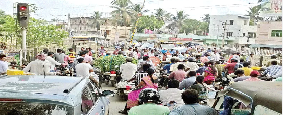 సిగ్మాతెలుగు డాట్ ఇన్, న్యూస్: భీమవరం సమీపం లో 8 కిమీ దూరంలోని శృంగవృక్షంలోని రైల్వే గేటు పలు సార్లు మొరాయించడంతో ప్రతి రోజు ప్రధాన రహదారి పిపి రోడ్డు మీదుగా వెళ్లే వాహనదారులు తీవ్ర ఇబ్బందులకు గురి అవుతున్నారు. ఇప్పటికే పలు మారులు రైల్వే సిబ్బంది ఈ గేటుకు రిపేర్ చేసినప్పటికీ గత మంగళవారం ఉదయం రైలు వెళ్లిన తరువాత గేటు తీసే క్రమంలో ఒక వైపు గేటు పైకి లేవకపోవడంతో 2 కిలో మీటరు మేర వాహనాలు నిలిచిపోయాయి. ఇక్కడ ట్రాక్ మధ్య భాగంలో గ్రావెల్ లేచిపోయి గుంటలు ఎక్కువ కావడంతో ట్రాక్ మధ్య రహదారి మలుపు సరిగా లేకపోవడం వల్ల వాహనదారులు తమ వాహనాలకు ఆచితూచి నడపాలి. దానికి తోడు ఈ గేటు చాలాసార్లు ఈవిధంగా జరుగుతున్నా రైల్వే అధికారులు శాశ్వత పరిష్కారం చెయ్యలేకపోతున్నారని వాహనదారులు ఆరోపిస్తున్నారు. వాహనదారులు ఆరోపిస్తున్నారు. ఏడాది క్రితం పాలకొల్లు రైల్వే గేటు కూడా ఇదే తరహాలో తిప్పలు పెట్టిన ఆ సమస్య ఇప్పుడు లేకుండా పోయింది.