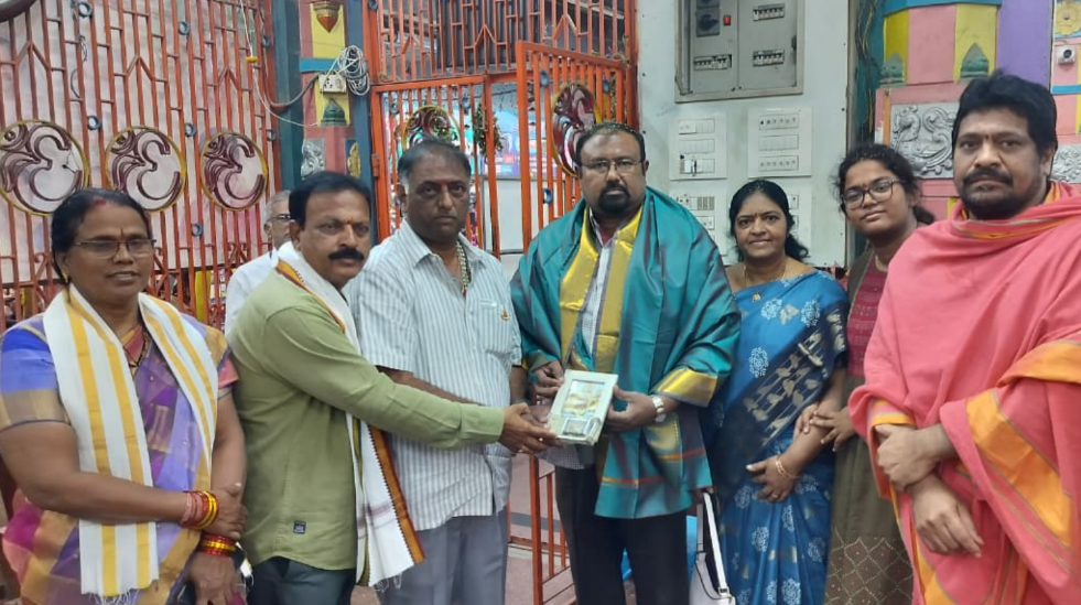 సిగ్మాతెలుగు డాట్ ఇన్ న్యూస్; భీమవరం పురాధీశ్వరి శ్రీశ్రీశ్రీ మావుళ్ళమ్మ అమ్మవారి దేవాలయంలో ప్రతి రోజు దూరప్రాంతాల భక్తుల కోసం జరిగే నిత్యాన్నప్రసాద వితరణ ట్రస్ట్ కు కీ”శే. సుంకర శ్యామల బ్రహ్మాజీ రావు పేరు మీద వారి కుటుంబ సభ్యులు ₹ 1,12000/- ఒక లక్ష పన్నెండు వేలు రూపాయలు కానుకగా అందచేసారు. వీరికి దేవస్థానం ప్రధాన అర్చకులు బ్రహ్మశ్రీ మద్దిరాల మల్లికార్జున శర్మ పూజలు ఆశీర్వచనాలు నిర్వహించారు. వీరికి దేవస్థానం అసిస్టెంట్ కమిషనర్ బుద్ద మహాలక్ష్మి నగేష్ శేషవస్త్రం ఫోటో అందచేసారు. ధర్మకర్తలు పాపోలు ఏడుకొండలు, గొంతిన రమణ పాల్గొన్నారు