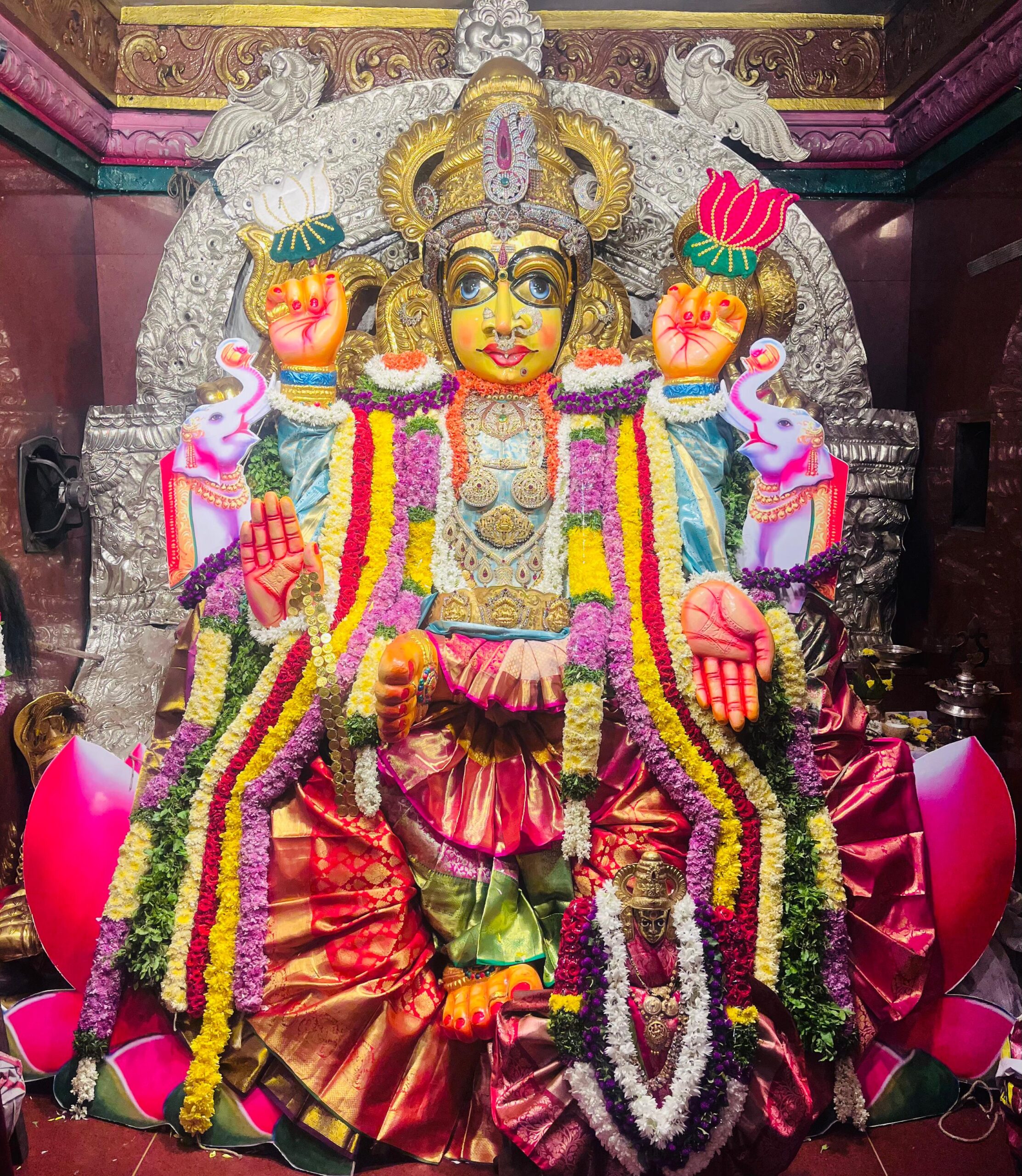 సిగ్మాతెలుగు డాట్, ఇన్ న్యూస్: ​ భీమవరం పురాధీశ్వరి శ్రీశ్రీశ్రీ మావుళ్ళమ్మ దేవాలయంలో దసరా వేడుకలలో భాగంగా నేడు, శుక్రవారం భక్తులు వేలాదిగా శ్రీ అమ్మవారి దర్శనం చేసుకొన్నారు. శ్రీ మహాలక్ష్మి అలంకరణలో ఉన్న శ్రీఅమ్మవారి దర్శనం కోసం నేటి మధ్యాహ్నం 12న్నర వరకు మహిళలు భారీ క్యూ లైన్ లలో నిలబడి వేచిఉండటం ఈ దసరా వేడుకలలో ఇదే తొలిసారి.. భక్తులకు ఎటువంటి అసౌకర్యం కలగకుండా, దర్శనం వేగంగా జరిగే విధంగా దేవాలయ సిబ్బంది ఆలయ సహాయ కమిషనర్ బుద్ధా మహాలక్ష్మి నగేష్ పర్యవేక్షణ లో ఏర్పాట్లను పర్యవేక్షించారు.