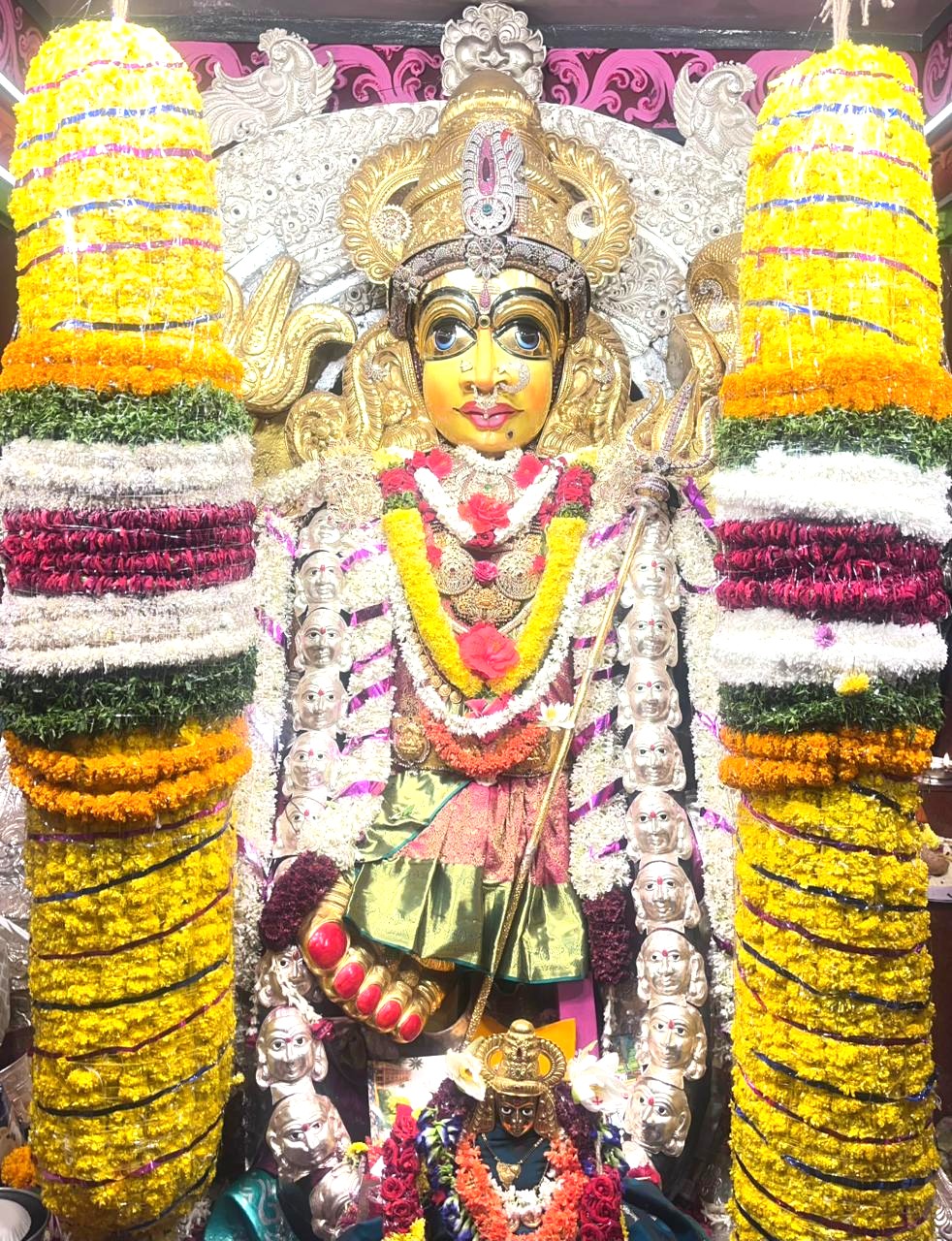 సిగ్మాతెలుగు డాట్, ఇన్ న్యూస్: భీమవరం పురాధీశ్వరి శ్రీశ్రీశ్రీ మావుళ్ళమ్మవారి వార్షికోత్సవాలు ఘనంగా జరుగుతున్నాయి. నేడు, బుధవారం శ్రీ మావుళ్లమ్మ అమ్మవారికి ఆకివీడు పూల పండ్లు వ్యాపారస్తుల సంఘం ప్రెసిడెంట్ Sk బాజి ఆధ్వర్యంలో సుమారు 160 కేజీల వివిధ రకముల పూలతో బారి గజమాల సమర్పించారు.గత 24 సంవత్సరాల నుండి శ్రీ అమ్మవారికి వార్షిక మహోత్సవాలలో గజమాల సమర్పిస్తున్నట్లు ప్రెసిడెంట్ మరియు సభ్యులు తెలియచేసినారు…ఆలయ అర్చకులు వీరికి పూజలు ఆశీర్వచనాలు నిర్వహించారు. దేవస్థానం కమిషనర్ బుద్ద మహాలక్ష్మి నగేష్ శేషవస్త్రం ఫోటో అందించారు. ఈ కార్యక్రమంలో ధర్మకర్తల మండలి సభ్యులు రామాయణం శ్రీనివాస్ పాపొలు ఏడుకొండలు మరియు ఆకివీడు పూల పండ్లు వర్తక సంఘం సభ్యులు పాల్గొన్నారు.