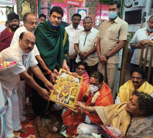 సిగ్మాతెలుగు డాట్ ఇన్, న్యూస్: ఆంధ్ర ప్రదేశ్ శాసన సభ స్పీకర్ తమ్మినేని సీతారామ్ శ్రీమతి శ్రీవాణి దంపతులు నేడు, శనివారం భీమవరం పురాధీశ్వరి శ్రీశ్రీ శ్రీ మావుళ్ళమ్మ అమ్మవారిని దర్శించుకున్నారు వీరికి ఆలయ సిబ్బంది అర్చకులు ఆలయ మర్యాద తో ఆహ్వానించి వారితో శ్రీ అమ్మవారికి ప్రత్యక పూజలు నిర్వహించి, శ్రీ అమ్మవారి జ్ఞాపిక, శేష వస్త్రం ఇచ్చి సత్కరించారు . ఈ సందర్భముగా స్పీకర్ తమ్మినేని సీతారామ్ దంపతులు, మహిమానీత అమ్మవారి దర్శనం భాగ్యం దక్కినందుకు చేసుకున్నందుకు ఆనందం వ్యక్తం చేస్తూ దేవాలయంలో ప్రతిరోజూ నిర్వహించే మరియు శ్రీ మావుళ్ళమ్మ అమ్మవారి శాశ్వత నిత్యా అన్నదానం నిధికి కు 50 వేలు కానుక అంజేశారని ఇఓ, సహాయ కమిషనర్ దాసరి శ్రీరామ వర ప్రసాద్ ఒక ప్రకటనలో తెలిపారు.