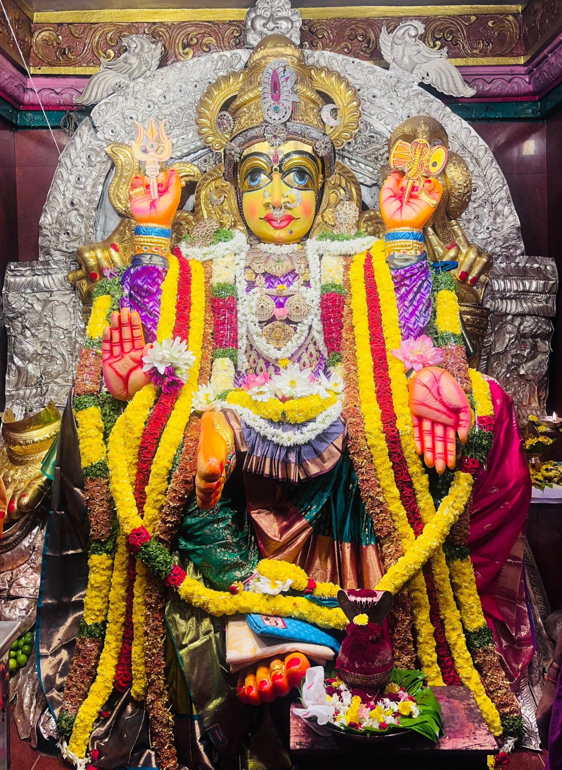 సిగ్మాతెలుగు డాట్, ఇన్ న్యూస్ : భీమవరం పురాధీశ్వరి శ్రీశ్రీశ్రీ మావుళ్ళమ్మ అమ్మవారి దేవస్థానంలో దసరా వేడుకలు ప్రారంభంగా నేటి సోమవారం శ్రీ అమ్మవారు శ్రీ స్వర్ణ రజిత కవచ అలంకరణలో దర్శమిచ్చారు. భక్తులు విశేషంగా దర్శించుకొంటున్నారు. ఇక శ్రీ మావుళ్ళమ్మవారి దసరా వేడుకలు నేటి సోమవారం నుండి అంటే ఈ నెల 22వ తేదీ నుండి అక్టోబర్ 2వ తేదీ వరకు రాష్ట్రదేవాదాయ శాఖ వారి ఆధ్వర్యంలో శ్రీ దేవి శరన్నవరాత్రులు ఘనంగా నిర్వహిస్తున్నారు. తదుపరి అక్టోబర్ 4వతేదీ ఉదయం 10 గంటల నుండి భక్తులకు మహా ప్రసాద వితరణ నిర్వహిస్తారు. ఈ నేపథ్యంలో ప్రతి రోజు నిలువెత్తు మూలవిరాట్ స్వరూపంలో శ్రీ అమ్మ వారు 11 రోజుల పాటు పలు దేవి అవతారాలలో భక్తులకు దర్శనమివ్వనున్నారు. దేవాలయ ఆవరణలో ప్రత్యేక కుంకుమ పూజలతో పాటు ప్రతి సాయంత్రం 4 గంటల నుండి వేదిక ఫై పలు ఆధ్యాత్మిక,సాంస్కృతిక కార్యక్రమాలు ఏర్పాటు చేస్తున్నారు. భారీ పందిళ్ళతో అందమైన లైటింగ్ అలంకరణలు చేసారు. భక్తులకు శ్రీ అమ్మవారి దర్శనం వేగంగా జరిగేటట్లు సౌకర్యాల విషయంలో ఇబ్బందులు లేకుండా విశేష ఏర్పాట్లు చేసినట్లు ఆలయ సహాయ కమిషనర్ మరియు కార్యనిర్వహణ అధికారి బుద్ధ మహాలక్ష్మి నగేష్ తెలిపారు.