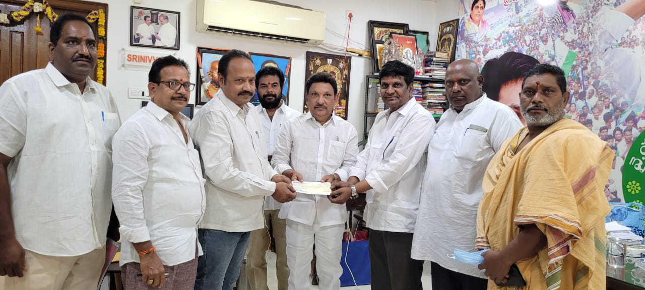 సిగ్మాతెలుగు డాట్ ఇన్ న్యూస్: భీమవరం వన్ టౌన్ లోని ప్రభుత్వ ఆసుపత్రి సమీపంలో కిష్కిందపురం లో వెలిసిన శ్రీ సీతా రామలింగేశ్వర స్వామి వారి పురాతన గుడి పునర్ నిర్మాణానికి గతంలో ప్రకటించినట్లు గానే .. స్థానిక ఎమ్మెల్యే గ్రంధి శ్రీనివాస్ తన కుటుంబ సభ్యుల పేరిట రూ 10 లక్షల 33 వేల ను విరాళంగా ఆలయ అధికారులకు స్థానిక క్యాంపు కార్యాలయంలో అందించారు. ఈ సందర్భంగా దేవదాయ శాఖ ఇన్స్పెక్టర్ వర్దినిడి వెంకటేశ్వరరావు మాట్లాడుతూ.. ఈ ఆలయ పున నిర్మాణానికి సంబంధించి భక్తుల కోరిక మేరకు ఎమ్మెల్యే గ్రంధి శ్రీనివాస్ ప్రభుత్వం ద్వారా రూ కోటి నిధులను మంజూరు చేయించడం జరిగిందని అన్నారు. అయితే భక్తుల భాగస్వామ్యంగా మూడో వంతు నిధులు 33 లక్షల 33 వేలను డిపాజిట్ చేయాల్సి ఉండడంతో, ఎమ్మెల్యే గ్రంధి శ్రీనివాస్ స్వయంగా కల్పించుకుని రూ 23 లక్షల వరకు భక్తుల నుండి సేకరించడం జరిగిందని అన్నారు. మిగిలిన రూ 10 లక్షల 33 వేల ను ఎమ్మెల్యే గ్రంధి శ్రీనివాస్ తన కుటుంబ సభ్యుల పేరిట ఆలయ నిర్మాణానికి విరాళంగా ఇవ్వడం జరిగిందని అన్నారు. ఈ సందర్భంగా దేవస్థానం తరుపున ఎమ్మెల్యే గ్రంధి శ్రీనివాస్ కుటుంబానికి, విరాళాలు అందించిన భక్తులకు కృతజ్ఞతలు తెలుపుతున్నామని అన్నారు. త్వరలోనే ఆలయ నిర్మాణ పనులను ప్రారంభించి త్వరిత గతిన నిర్మాణ పనులను పూర్తి చేస్తామని అన్నారు. ఈ కార్యక్రమంలో ఈవోలు తోట శ్రీనివాసరావు, కిషోర్ ,ఆలయ పాలకమండలి చైర్మన్ మందారపు శ్యాంసుందర్రావు, తదితరులు పాల్గొన్నారు.