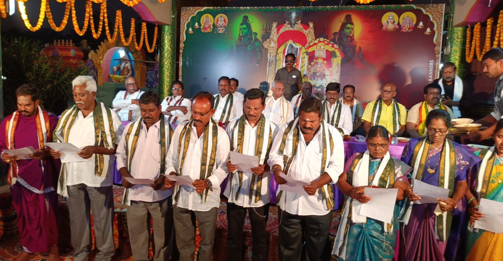 సిగ్మాతెలుగు డాట్, ఇన్ న్యూస్: భీమవరం మండలం యనమదుర్రు లోని ‘స్వయం భువుడు’ శ్రీపార్వతీ సమేత శక్తీశ్వరస్వామి దేవస్థానం నూతన ధర్మకర్తల మండలి సభ్యులు నేడు, సోమవారం ప్రమాణ స్వీకారం చేశారు. చైర్మన్ గా నడపన రాము, సభ్యులుగా అనిశెట్టి శక్తీశ్వరరావు, తోట రాజ్యలక్ష్మి, మేకల వరలక్ష్మి, కొట్టాడ శ్రీను, కండిబోయిన మంగతాయారు, మద్దిరాల దుర్గాభవాని, మజ్జి అనూష, లంకపల్లి నాగేశ్వరరావు, కాళి శ్రీనులు ప్రమాణ స్వీకారం చేశారు. ఎమ్మెల్యే పులపర్తి అంజిబాబు మాట్లాడుతూ .. దేవాలయాల అభివృద్ధికి నూతన పాలకవర్గ సభ్యులు కృషి చేయాలని, పురాణ ప్రాశస్యం ఎంతో చరిత్ర కలిగిన ఈ దేవాలయానికి పాలకవర్గ సభ్యులుగా నియమితులు కావడం భగవత్ సేవ యేనని అన్నారు. కార్యక్రమంలో ఆలయ ఈవో, గ్రామ సర్పంచ్, గ్రామస్థులు, మహిళలు పాల్గొన్నారు.