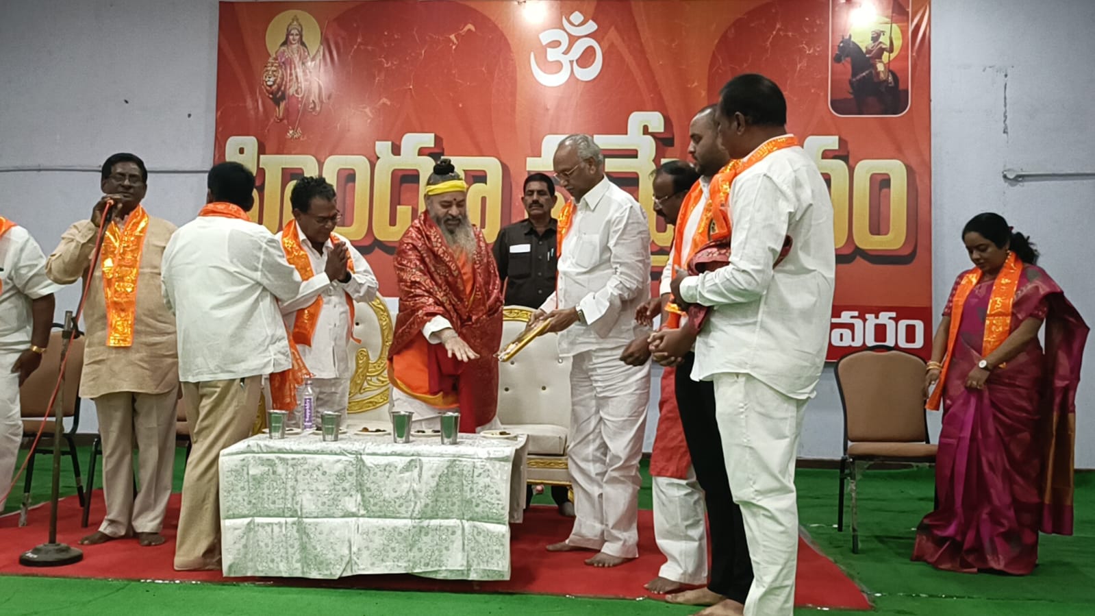 సిగ్మాతెలుగు డాట్, ఇన్ న్యూస్:హైందన సనాతన ధర్మాన్ని కాపాడుకోవడం ప్రతి హిందువు కనీస ధర్మమని శృంగవృక్షం దత్తపీఠం 5వ పీఠాధిపతి శ్రీసాయి దత్త నాగానంద సరస్వతి స్వామీజీ అన్నారు. భీమవరం కృష్ణదేవరాయ కళ్యాణ మండలంలో నేడు, గురువారం హిందు సమ్మేళనం నిర్వహించారు. ప్రస్తుతం హిందువులపై జరుగుతున్న దాడులపై సమాజం అప్రమత్తంగా ఉండాల్సిన అవసరం ఉందని, ఆధ్యాత్మికతే హిందూ సమాజానికి బలమని ఐక్యతకు మూలమన్నారు. భీమవరం ఎమ్మెల్యే పులపర్తి రామాంజనేయులు మాట్లాడుతూ.. హిందూ ధర్మానికి ఐకమత్యం ఎంతో ముఖ్యమని, భక్తి భావంతో దేశ సమైక్యత కోసం ప్రతిఒక్కరు పాటు పడాలన్నారు. హిందూ సమాజాన్ని చైతన్యపరచి, హైందవ ధర్మ పరిరక్షణకు ప్రతి హిందువు కృషి చేయాలన్నారు. కార్యక్రమ కార్యదర్శి గొంతిన శ్రీనివాస్, కోశాధికారి రావూరి అనంత్, అడ్డగర్ల ప్రభాకర్ గాంధీ సభ్యులు పాల్గొన్నారు.