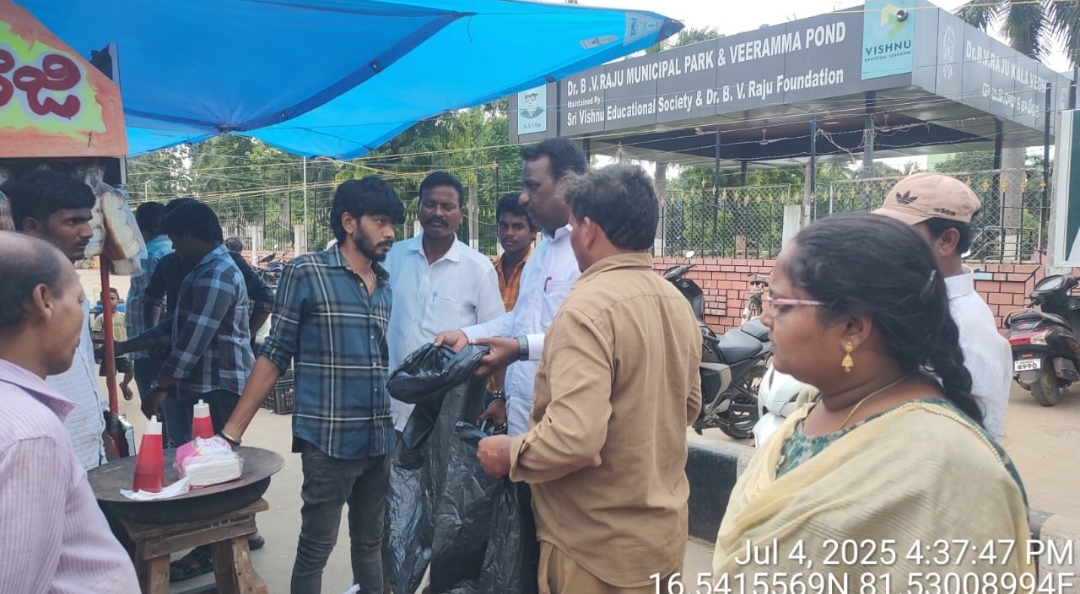 సిగ్మాతెలుగు డాట్, ఇన్ న్యూస్: భీమవరం పురపాలక సంఘ పరిధిలో షాపు యజమానులు వారి వద్ద ఉత్పత్తి అయ్యే చెత్త చెదారములు షాపులు వ్యాపారములు ముగించుకొనిన పిదప చెత్తను ఒక డస్ట్ బిన్ ఏర్పాటు చేసుకొని, సదరు చెత్తను మున్సిపాలిటీ వాహనమునకు ఇవ్వాలని ఆలా కాక రోడ్లపైన, మురుగు కాలువలలో చెత్త వేసిన యెడల అట్టి వారిపై మొదటిసారిగా అపరాధ రుసుము విధించబడును. రెండవ పర్యాయము తనిఖీ చేసిన సమయములో వ్యాపారస్తులలో మార్పురాని యెడల సదరు షాపు సీజ్ చేసి మూసివేయబడును. దీనితో పాటు నిషేదిత ప్లాస్టిక్ వస్తువులు విక్రయము జరుపుతున్న హోల్ సేల్ షాపులపై నిరంతర నిఘా నిమిత్తం ప్రత్యేక టాస్క్ ఫోర్స్ టీమ్ ఏర్పాటు చేసారు. అధికారులుగా కానూరి శ్రీనివాస్, జంపన సత్యనారాయణ రాజు, హెల్త్ అసిస్టెంట్ లఆధ్వర్యంలో జరిపిన దర్యాప్తులో హోల్ సెల్ ఏజెన్సీల వద్ద రూ 6,500/- పెనాల్టీ గా వసూలు చేయుట జరిగినది.ప బ్లిక్ ప్రదేశాలలో బి. వి. రాజు పార్క్ వద్ద ఏర్పాటు చేయబడిన స్టాల్స్ వద్ద వ్యాపారుల నుండి చెత్త వేసినందులకుగాను అపరాధ రుసుముగా రూ. 10,500/-లు యస్. చంటి బాబు, శానిటరీ ఇన్స్పెక్టర్ వారు వసూలు చేయుట జరిగినది. పట్టణములో ప్రతి ఒక్కరూ క్లాత్ సంచులు, జూట్ సంచులు వినియోగించవలేనని, ప్లాస్టిక్ రహిత స్వచ్చ భీమవరం గా మార్పు చేయుటకు ప్రతి ఒక్కరూ సహకరించ వలేనని కె. రామచంద్రా రెడ్డి, కమిషనర్ , ఎ. రాంబాబు, అసిస్టెంట్ కమిషనర్ ఆర్ సోమశేఖర్, హెల్త్ ఆఫీసర్ విజ్ఞప్తి చేస్తున్నారు.