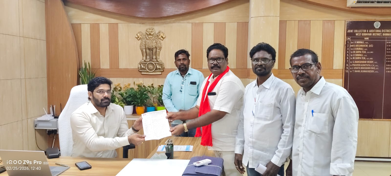 సిగ్మాతెలుగు డాట్, ఇన్ న్యూస్: విద్యుత్ మీటర్ రీడర్స్ కు ఎస్ర్కో అకౌంట్ ద్వారా వేతనాలు చెల్లించాలని, విద్యుత్ మీటర్ రీడర్స్ కు పిఎఫ్, ఇఎస్ఐ అమలు చేయాలని విద్యుత్ మీటర్ రీడర్స్ యూనియన్ పశ్చిమ గోదావరి జిల్లా గౌరవాధ్యక్షుడు కోనాల భీమారావు డిమాండ్ చేశారు. విద్యుత్ మీటర్ రీడర్స్ న్యాయమైన సమస్యలు పరిష్కారం కోరుతూ ఎఐటియుసి విద్యుత్ మీటర్ రీడర్స్ యూనియన్ ఆధ్వర్యంలో నేడు,బుధవారం భీమవరంలోని కలెక్టరేట్ వద్ద ధర్నా నిర్వహించి డిమాండ్స్ తో కూడిన వినతిపత్రం జిల్లా జాయింట్ కలెక్టర్ టి.రాహుల్ కుమార్ రెడ్డి కి అందజేశారు. కాంట్రాక్టర్లు పై చర్యలు తీసుకోవాలని నర్సాపురం, తాడేపల్లిగూడెం డివిజన్లలో విద్యుత్ మీటర్ రీడర్లను కాంట్రాక్టర్లు నిబంధనలు మేరకు జీత భత్యాలు ఇవ్వడంలేదని వారిపై చర్యలు తీసుకోవాలని ఆయన డిమాండ్ చేశారు. విద్యుత్ మీటర్ రీడర్స్ భీమవరం డివిజన్ అధ్యక్షుడు పెనుమాక జాకబ్ మాట్లాడుతూ స్మార్ట్ మీటర్లు పేరుతో రాష్ట్రంలో 4,500 కుటుంబాలను రోడ్డున పడేయొద్దని తమకు న్యాయం చేయాలని కోరారు.