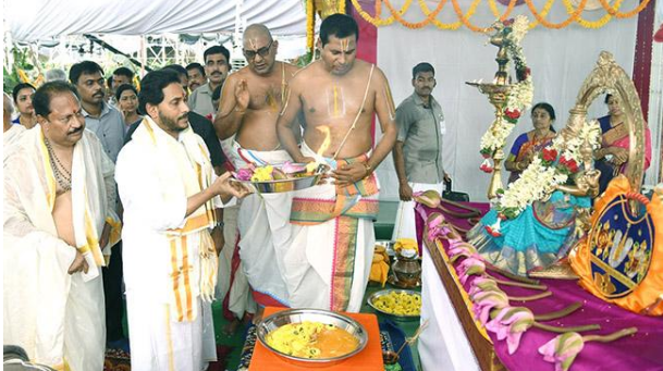 సిగ్మాతెలుగు డాట్, ఇన్ న్యూస్: విజయవాడ లోని ఇందిరాగాంధీ మున్సిపల్ స్టేడియంలో రాష్ట్ర ధర్మాదాయ దేవాదాయ శాఖ ఆధ్వర్యంలో .. హిందువులు మహాశక్తి శ్రీ అమ్మవారికి ప్రీతిపాత్రమైన నేడు, శుక్రవారం రోజు అంగరంగ వైభవంగా ప్రారంభమైన అష్టోత్తర శతకుండాత్మక (108) చండీ, రుద్ర, రాజశ్యామల, సుదర్శన సహిత శ్రీ లక్ష్మి మహా యజ్ఞం ను సీఎం జగన్ సాంప్రదాయ పట్టు వస్త్రాలు ధరించి ను వేదమంత్రోచ్ఛరణల మధ్య ప్రారంభించారు. . ఏపీ సర్వతోముఖాభివృద్ధి కోసం శ్రీలక్ష్మీ మహా యజ్ఞం చేస్తున్నారు. ముఖ్యమంత్రి జగన్ స్వయంగా యజ్ఞ సంకల్పం తీసుకున్నారు. ఈ సందర్భంగా దేవాదాయ మంత్రి కొట్టు సత్యనారాయణ తో కలసి, గోశాల వద్ద ప్రత్యేక పూజలు చేశారు. కపిల గోవుకు హారతి ఇచ్చి, అఖండ దీపారాధనలో పాల్గొన్నారు. ఈ క్రమంలో వేదపండితులు సీఎం జగన్కు ఆశీర్వాదం అందజేశారు. రాష్ట్ర ప్రభుత్వం అత్యంత ప్రతిష్టాకరంగా ప్రపంచ వ్యాప్తంగా హిందువులలో ఆధ్యాత్మిక శోభ పెంపొందేలా నేటి నుంచి ఆరో రోజులపాటు అష్టోత్తర శతకుండాత్మక చండీ, రుద్ర, రాజశ్యామల, సుదర్శన సహిత శ్రీలక్ష్మీ మహాయజ్ఞం లు నిర్వహిస్తున్నారు.1,008 మందితో విష్ణు సహస్రనామ పారాయణం నిర్వహిస్తున్నారు. ప్రతి రోజు ప్రముఖ పీఠాధిపతుల ప్రవచనాలతో పాటు సాయంత్రం 6గంటల నుండి ప్రముఖ ప్రవచన కర్త.. చాగంటి కోటేశ్వరరావు చే ప్రవచనాలు ఉంటాయి.ఆఖరి 6వ రోజు శ్రీ స్వరూపానంద స్వామి యాగాన్ని పరిపూర్ణం చేస్తారు. ఈ కార్యక్రమాలు టివి ఛానెల్స్ లో ప్రత్యక్ష ప్రసారాలు ఏర్పాటు చేసారు. స్టేడియంలో ప్రతి రోజు 15 వేల మంది భక్తులు పాల్గొనేలా ఏర్పాట్లు చేసారు.