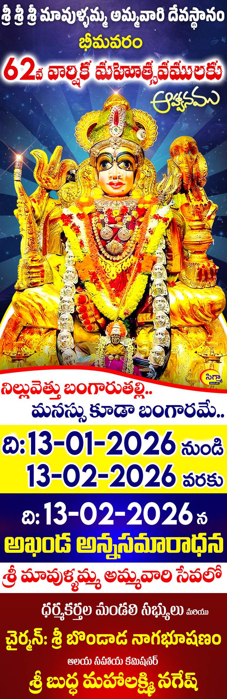 సిగ్మా తెలుగు డాట్ కామ్, న్యూస్: ఓం.. గం ..గం .. గణపతియే నమః .. తెలుగు రాష్ట్రాలలో చిత్తూరు జిల్లా లో కాణిపాకం, తూర్పు గోదావరి…